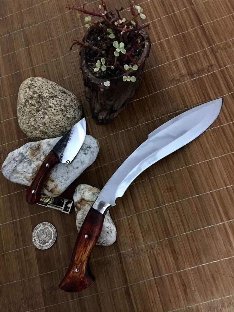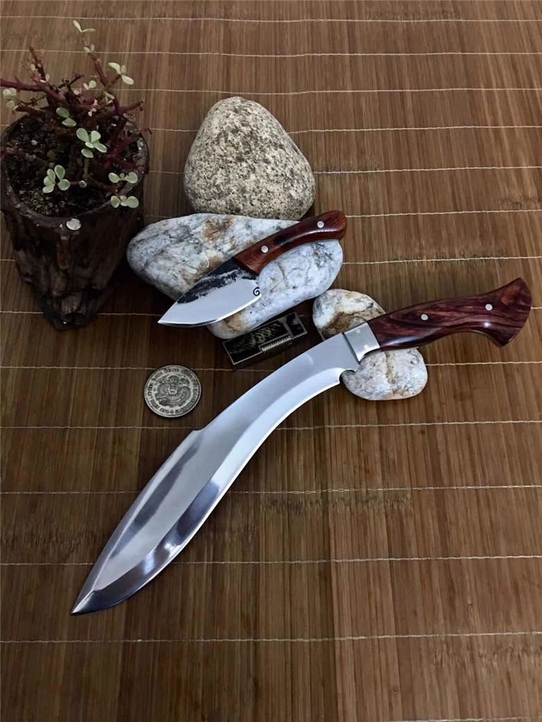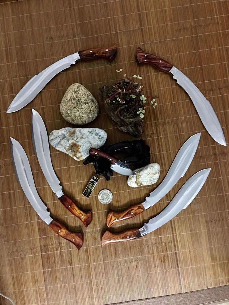 潘大师凹面狗腿刀 总长:41公分 刃长:27.5公分 进口:俄罗斯高速钢 硬度:60 厚度:0.6公分