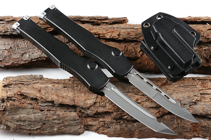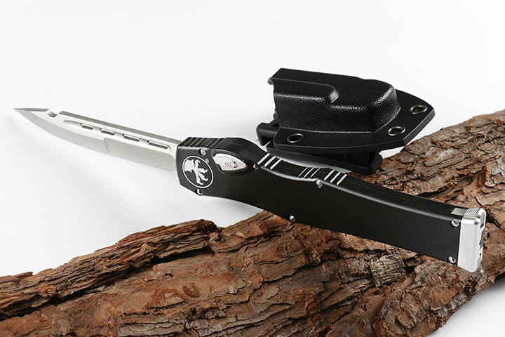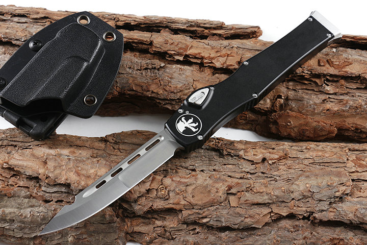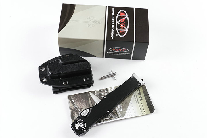 MICROTECH微技术光炫6拉尾伸缩刀 全长:26.8 CM 刃长:11.0 CM 刃宽:2.0CM 刃厚:0.431CM 刀刃材质:9CR18MOV 柄材:铝合金 刀型:直跳 锁定类型:按钮锁。内置保险锁,放在口袋不会误开。 重量:296克(含包装) 附件:Kydex鞘,说明书,彩盒,送拆刀工具 ,分T头和尖头两款,下单请注明。 整刀用CNC,电脑锣,线切割制作而成,手工,精密度非常高,绝对不会缩头,很值得收藏的一把刀,数量有限。
