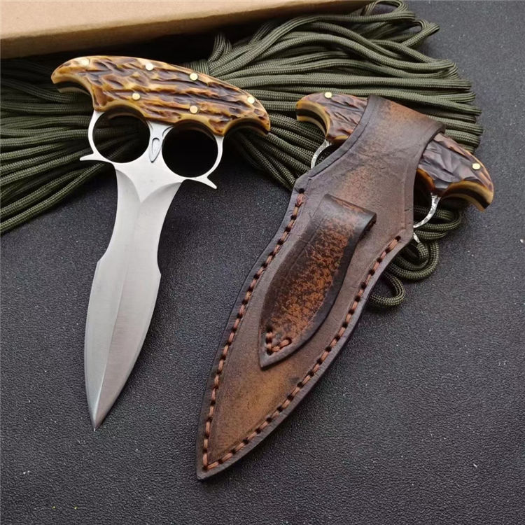 超锋利鹰刺手刺 全长:16CM 刃长:7.5CM 最大宽度:10CM 材质:9Cr18M0V 硬度:59HRC 表面处理:砂光+腐蚀 柄部材质:牛骨 刀身净重:202g 含鞘总重:253g 配件:进口植糅皮雕花手工缝线皮套 包装:牛皮纸硬盒 其他:全手工打磨、线切割开料一体龙骨、手工二次开刃制作,绝对是收藏玩家的一大喜好