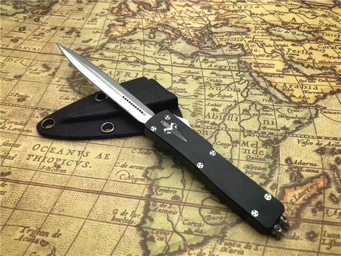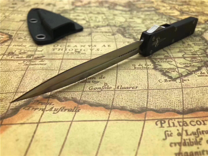 微技术迷你款毒液跳刀 全长:17.5cm 刃材:D2 柄材:T6航空铝 玻璃撞击器:2个 配套:K鞘