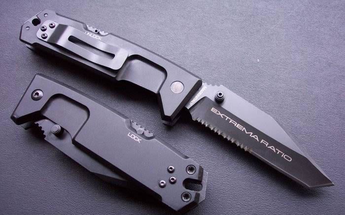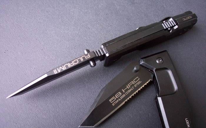 极端武力FUlCRUM II T(T头) 加厚珍藏版 全长:22.3cm 刃长:9.8cm 刃材:440C 硬度:57-58 刃厚:0.6cm 涂层:黑钛 柄材:防腐处理手柄 6061-T6铝 净重:200克 总重:310克 锁闭:制尾锁,带保险轴 (有"LOCK"标志) 配搭:2个规格的内六角匙,作为刀具维护工具。 原装纸盒 完全按照正品1:1制作,所有的配件都可以和正品通用