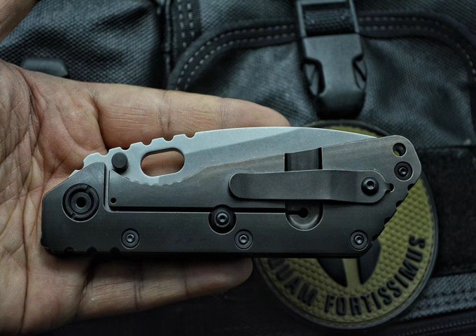LC版挺进者折刀碳纤柄 全长:227mm 折合:130mm 刃长:97mm 刃宽:33mm 刃厚:4.6mm 柄厚:12.5mm 重量:171g 刃材:D2 硬度:59-60HRC 刃面:珠光石洗 柄材:钛合金TC4+碳纤 刀夹:整体钛合金切削 表面处理:阳极氧化 所有轴件440不锈钢硬度HRC50 所有螺丝420不锈钢硬度HRC45 钛框架锁+钢锁定面做热处理硬度HRC60 陶瓷定位珠 大型轴承顺滑滚珠刀轴系统+大型中轴螺丝