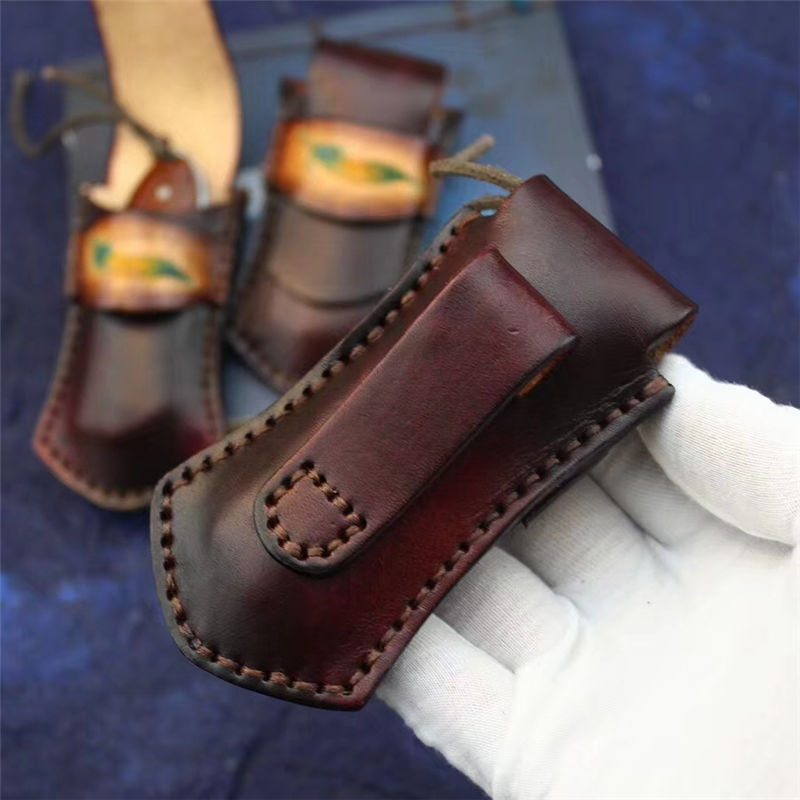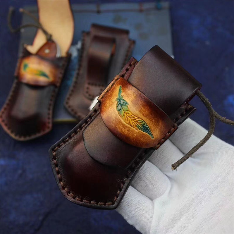 皮套:手工雕花羽毛牛皮鞘
