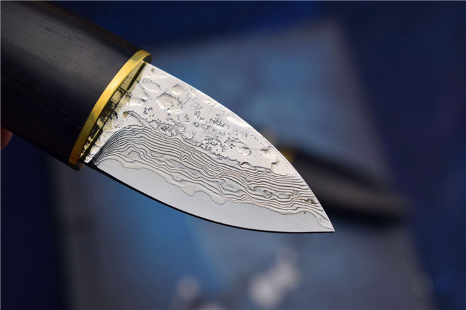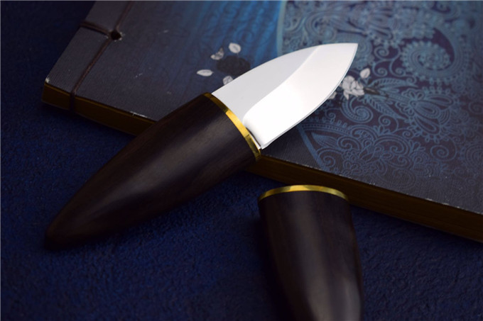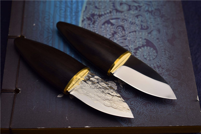 D2钢纯手工小橄榄直刀 全长:12cm 刃长:5cm 宽:2.5cm 刃口:0.3cm 刃材:D2钢 硬度:59