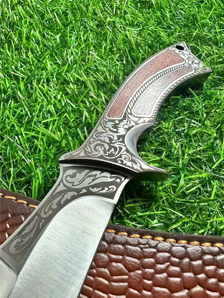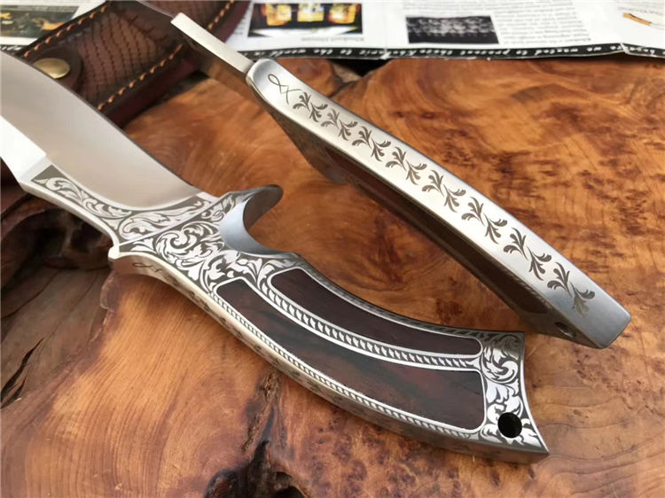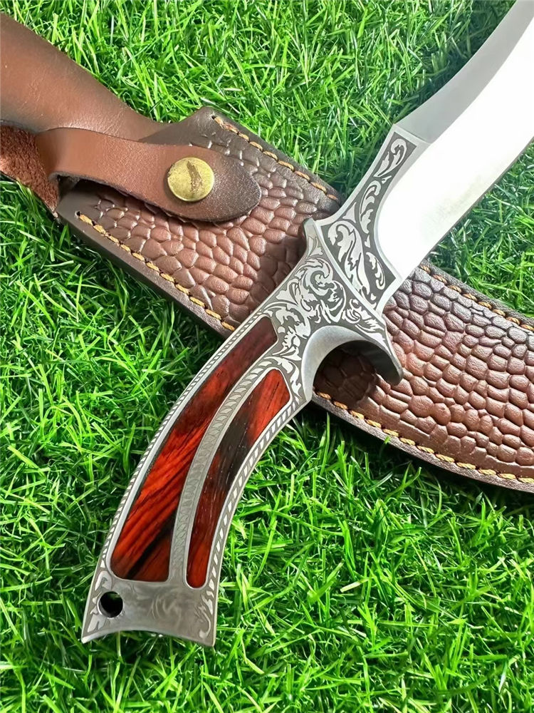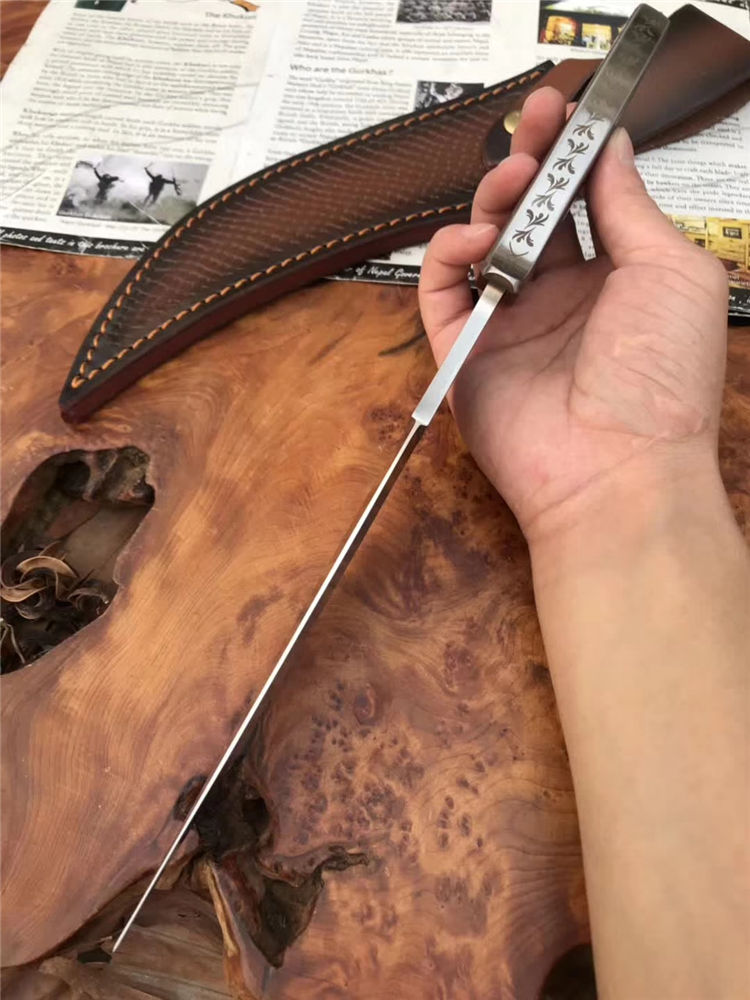 手工缝制高档皮套手柄镶进口微粒黄檀木,非常锋利