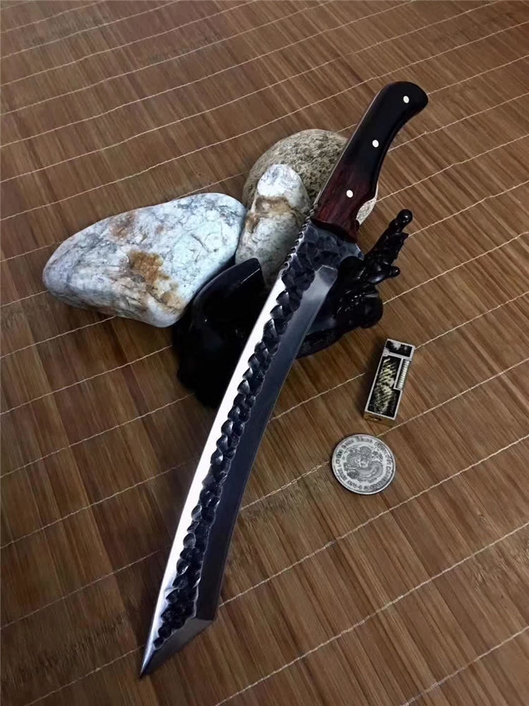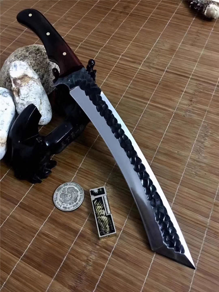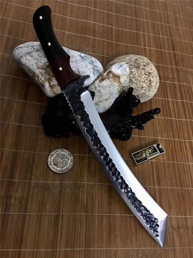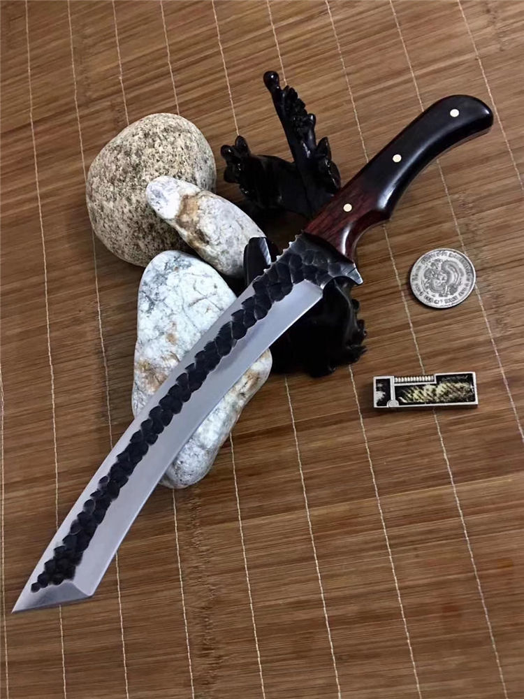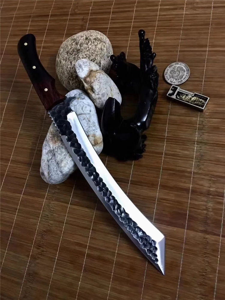 原锻师傅纯手工精心精细锻打户外猛将开山刀,刀口超级锋利硬度61度刀面采用古老手工锻打蛇鳞凹凸刀面进口国外高速钢两次淬火回火