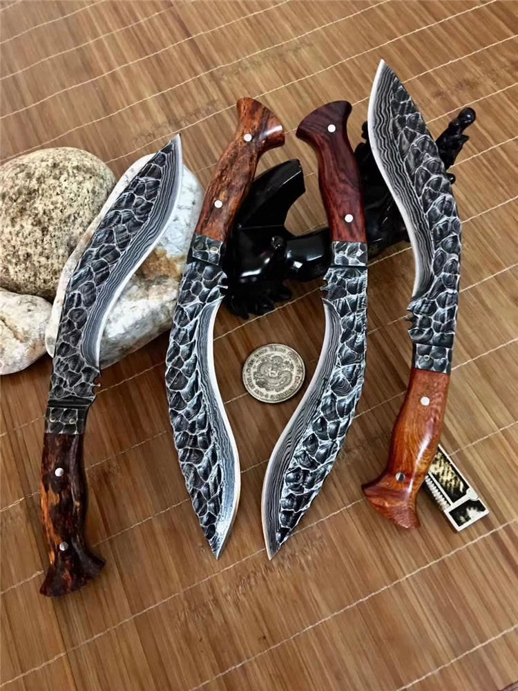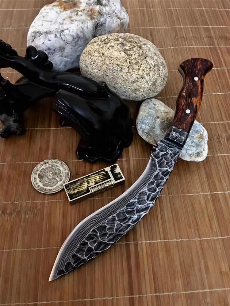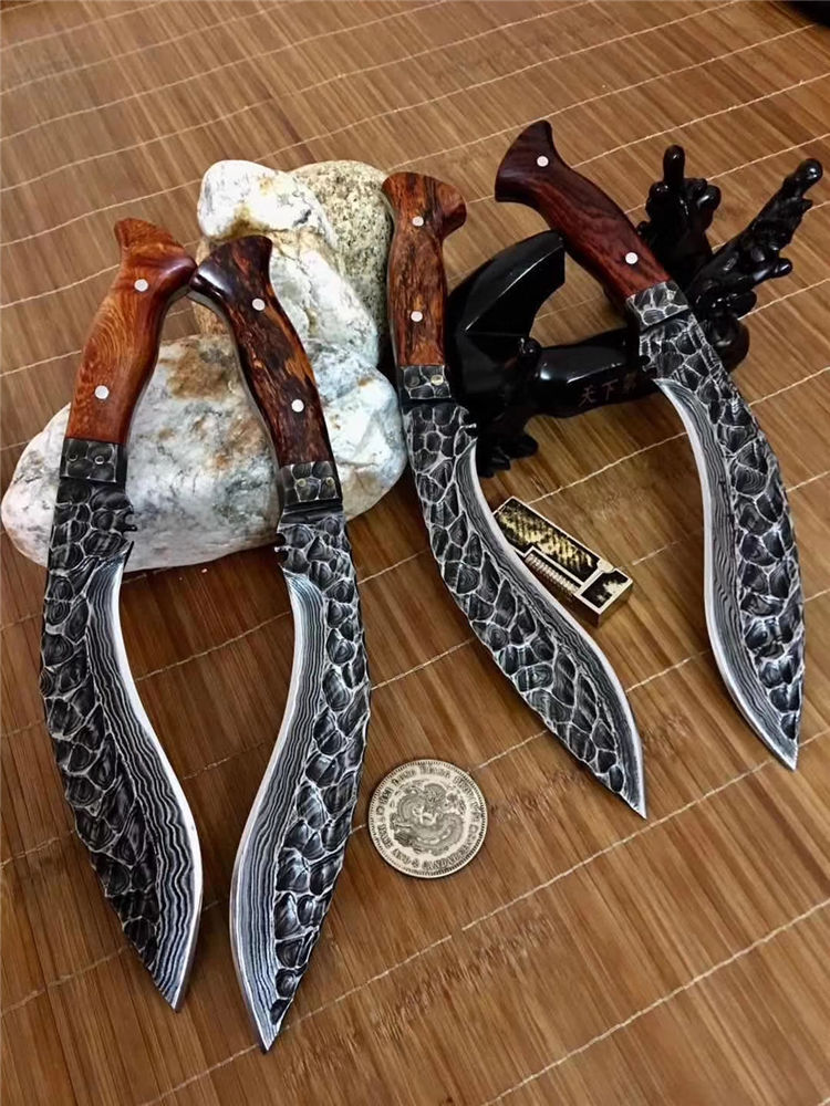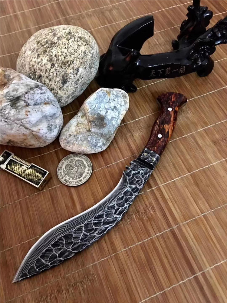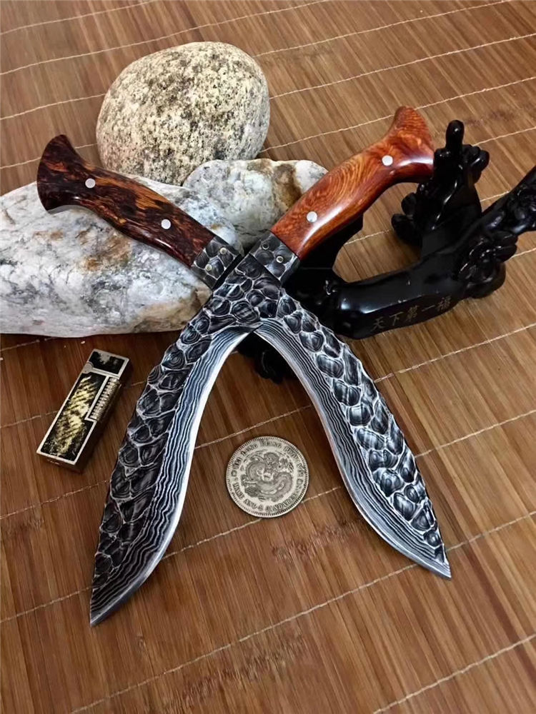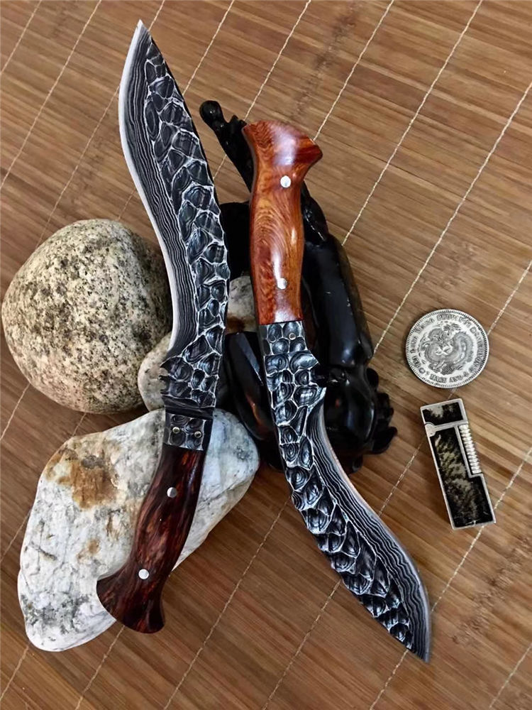 潘大师手远古手工石纹凹凸锻打狗腿 总长:32-35公分 刃长:20公分 硬度:61 柄进口非洲黄花梨木国内独一无二手工之刃大马钢锻打 原锻潘师傅,纯手工打造经典艺品钢材也是来自潘大师手工锻打,全身上下百分百的纯手工,锋利度极高《因为所有制作纯手工,尺寸把控在32-35cm左右随机发放》注意,认准底图,以防假冒