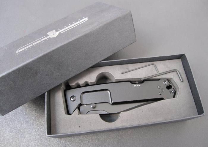 全长:26cm 刃长:11cm 刃宽:3cm 刃材:440C 硬度:57-58 刃厚:0.4cm 涂层:黑钛 柄材:防腐处理手柄 6061-T6铝,黑色阳极电镀处理 净重:180克 总重:380克 锁闭:背锁.一经锁定,简直可以当直刀使用! 配搭;2个规格的内六角匙,作为刀具维护工具;带坚固背夹;原装纸盒。
