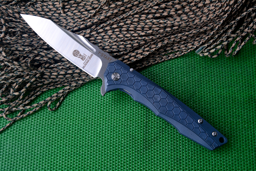 随风版(Y-START)2018俄罗斯世界杯纪念折刀 全长:234mm 刃长:99mm 手柄长:135mm 刃厚:4.0mm 刃宽:27.5mm 刃材:VG-10(真空热处理) 表面处理:石洗后数控磨 硬度:HRC60-61 手柄材料:钛合金(TC4)陶瓷轴承 净重:150g 包装:褐色小盒 LK5018 VG10刀刃