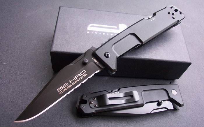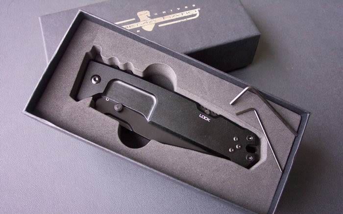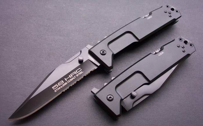 全长:26cm 刃长:11cm 刃宽:3cm 刃材:440C 硬度:57-58 刃厚:0.6cm (加厚的刀身,足以完成各种粗暴的作业) 涂层:黑钛 柄材:防腐处理手柄 6061-T6铝,黑色阳极电镀处理 净重:300克 总重:380克 锁闭:背锁,带保险轴 (有"LOCK"标志)。一经锁定,简直可以当直刀使用! 配搭:2个规格的内六角匙,作为刀具维护工具;带坚固背夹;原装纸盒。 完全按照正品1:1制作,所有的配件都可以和正品通用