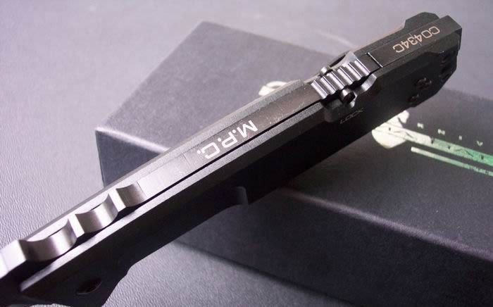 极端武力M.P.C.I(加厚珍藏版) 全长:26cm 刃长:11cm 刃宽:3cm 刃材:440C 硬度:57-58 刃厚:0.6cm (加厚的刀身,足以完成各种粗暴的作业) 涂层:黑钛 柄材:防腐处理手柄 6061-T6铝,黑色阳极电镀处理 净重:300克 总重:380克 锁闭:背锁,带保险轴 (有"LOCK"标志)。一经锁定,简直可以当直刀使用! 配搭:2个规格的内六角匙,作为刀具维护工具;带坚固背夹;原装纸盒。 完全按照正品1:1制作,所有的配件都可以和正品通用