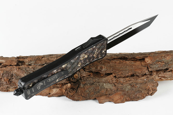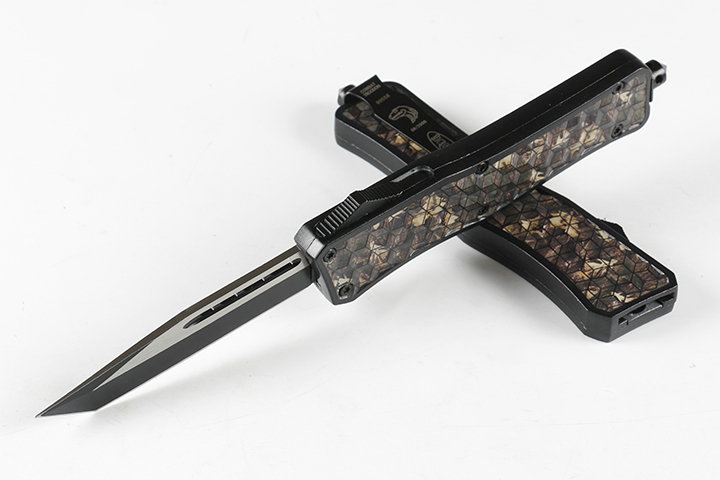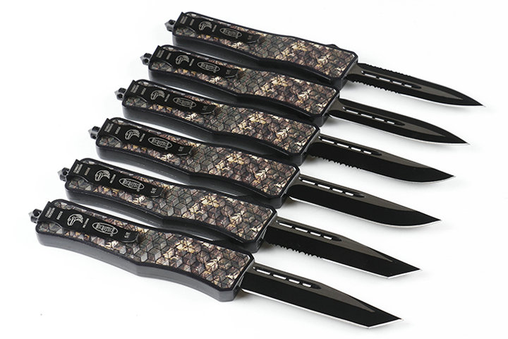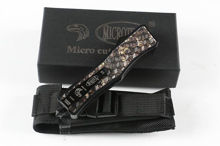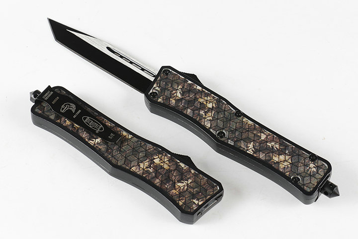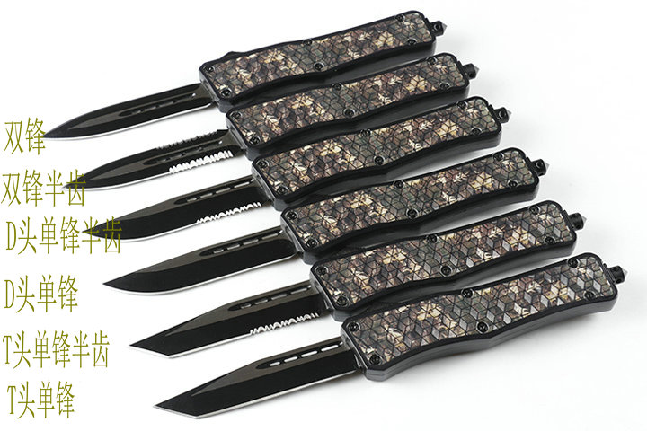 微技术单锋P型直弹刀(6款迷彩) 开启长度:24.0CM 合起长度:14.2CM 刃长:9.8cm 刃厚:0.3CM 硬度:57HRC 刃材:440 表面:刀刃发黑伴拉丝 把手:锌铝合金 净重:250克(整刀) 毛重:350克(含包装物) 开合:双动作,直推开关,自动弹出和收回 包装:耐磨专用战术尼龙套。 口袋刀夹:弹簧刀夹 玻璃敲击器:钨质玻璃敲击器。共6种刀刃,下单请注明,谢谢!