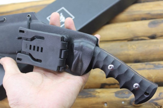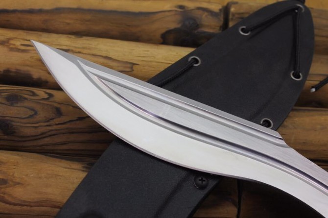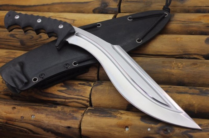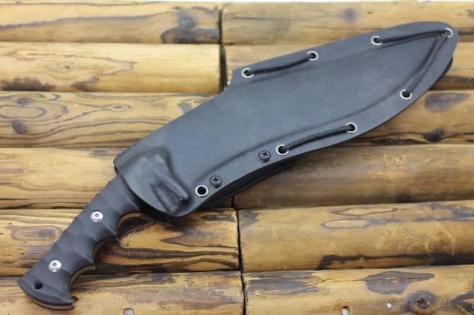 松田菊男S瘦身狗腿弯刀 品牌:松田菊男 全长:35CM 刃长:23CM 刃材:7Cr17 硬度:59HRC 刃厚:0.55CM 刃宽:4.5CM(最宽处) 柄长:12CM 柄材:G10 刀鞘:K鞘 刀重:480克 重量:850g(含包装) 锁定:弯刀 表面处理:镜面+拉丝