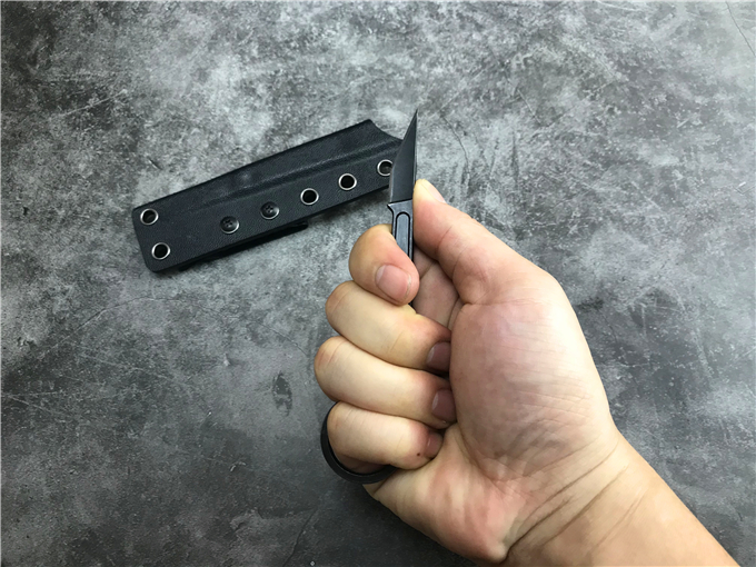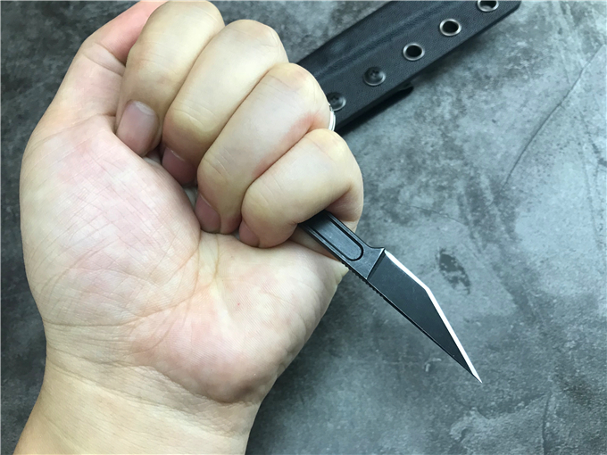 其精致小巧的造型使其可以隐藏在身上任何地方携带。其形似外科手术刃的刃片搭配超薄手柄,使其有着更灵活的攻击/防卫效用,超大号尾指环设计可以更好的控制这把刃,保证使用时不会轻易脱手,而且尾环设计作用不仅于此,还可以让使用者更快速的改变刃口朝向,从意想不到的角度进行攻击