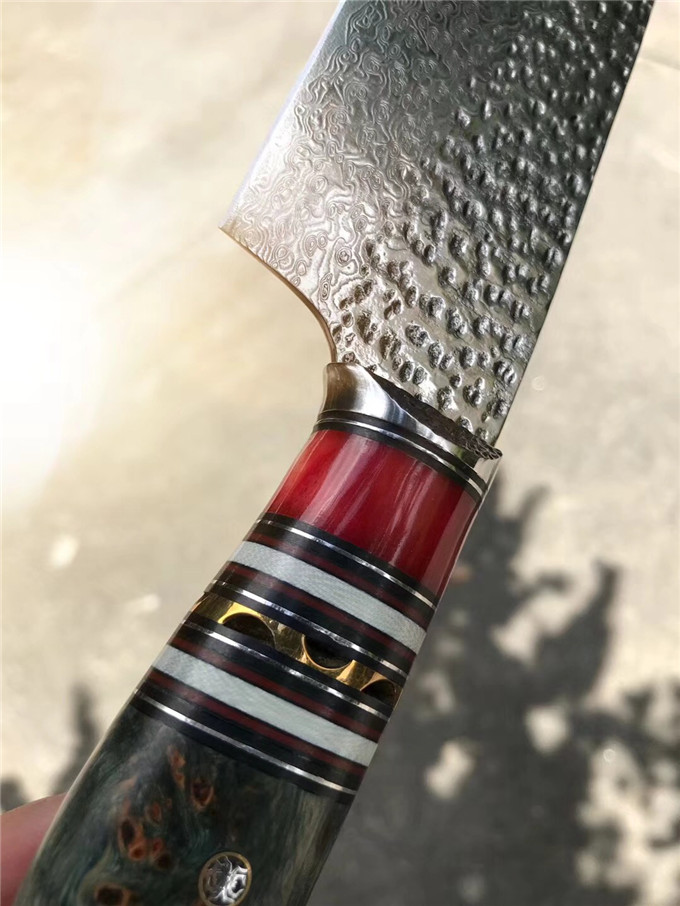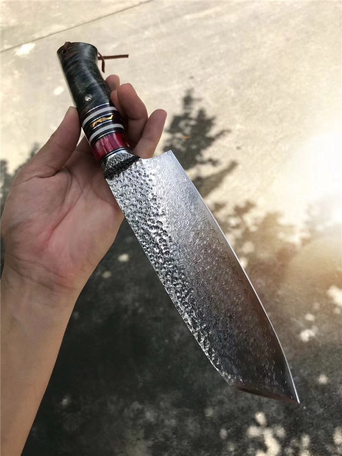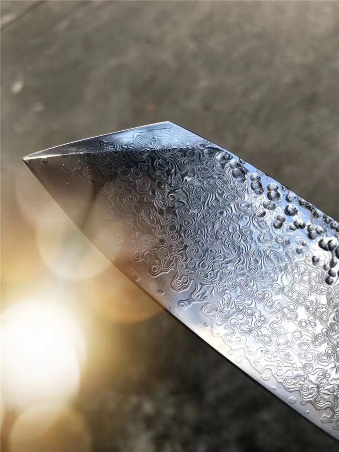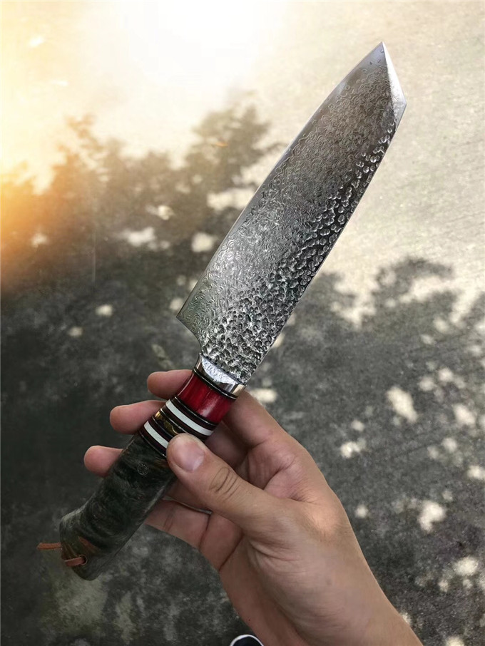 钢材:由日本客户提供当地VG10手工锻造钢材,67层,真空热处理