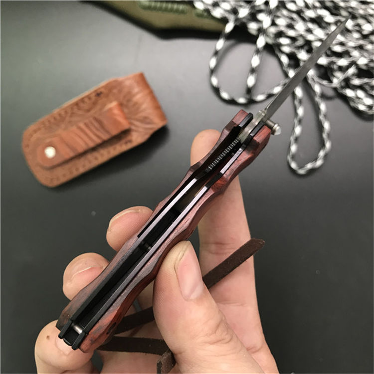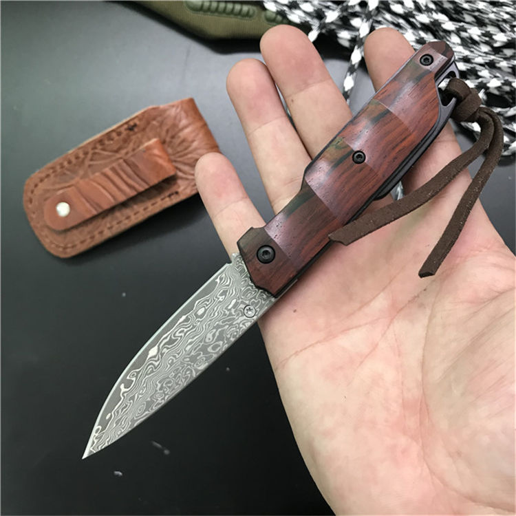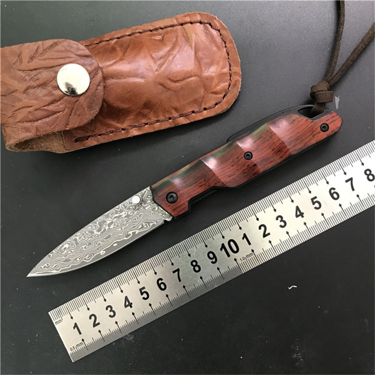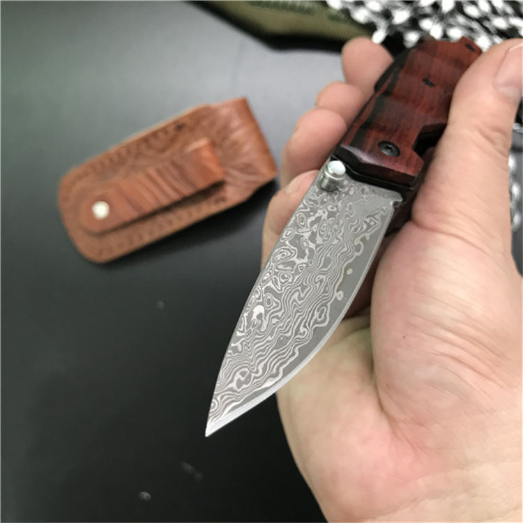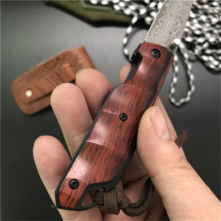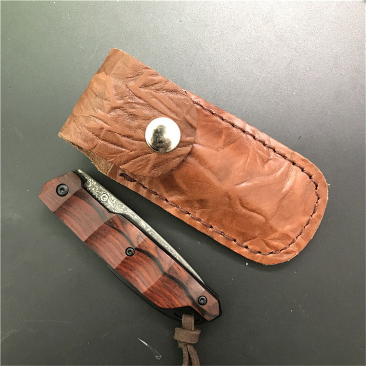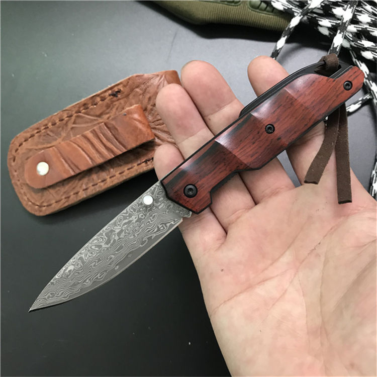 大马士革猎锋折刀 总长:17.7cm 刃长:7.6cm 刃厚:3MM 钢材:V10大马士革钢 柄材:进口科檀木 皮套:头层牛皮套 大马士革钢-猎锋小折刀,纯手工制作完成、看图做工细节非常精致、边角修磨完美无暇、刀刃采用VG10大马士革钢,收藏送礼高端货,送头层牛皮套!每一道工序都是纯手工制作,老师傅二十年经验,非常帅一款折叠刀,收藏玩家不可以缺少的作品