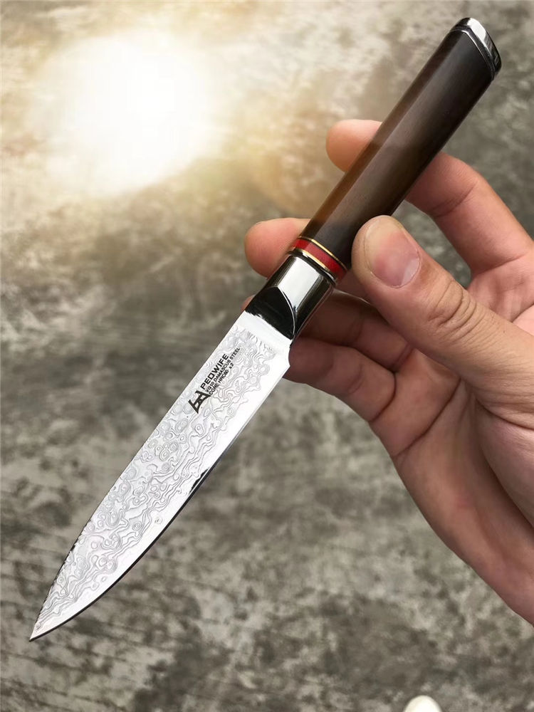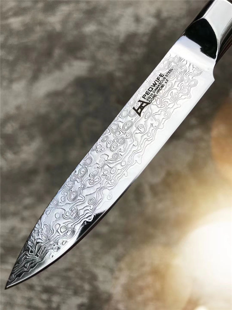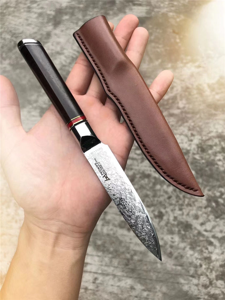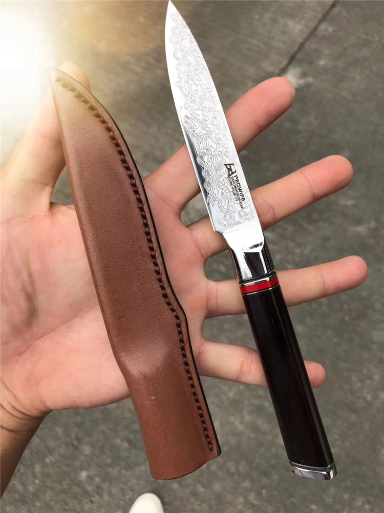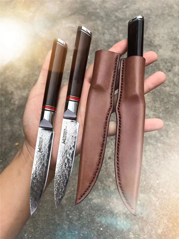 搭配纯手工缝线制作形成皮套,质量手工非常好,高端家庭,必备送礼水果刀,原装正品出口版,正宗日本VG10大马士革钢,67层,资金周转偷卖转内销
