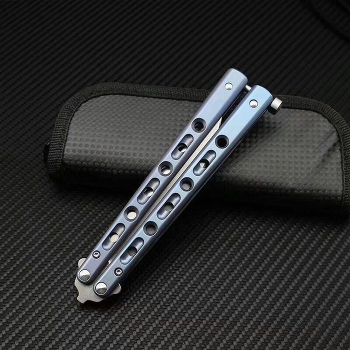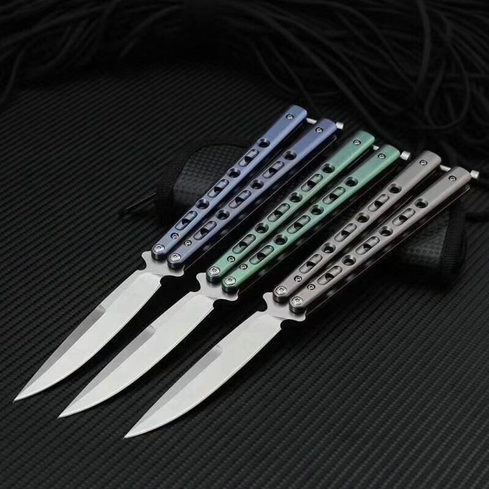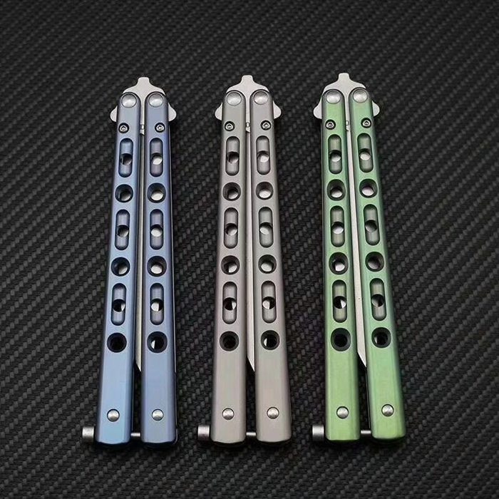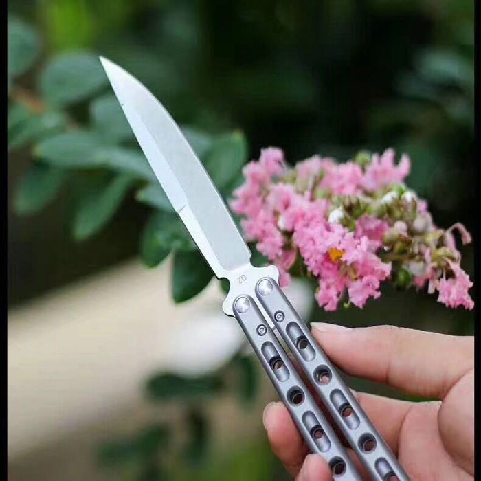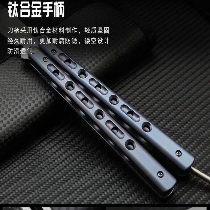 经典钛合金BM62甩刀 全长:24.7cm 刃长:9.8cm 柄长:13.2cm 刃宽:2.0cm(最宽处) 刃厚:4mm 刃材:D2钢 硬度:60HRC 刀柄:钛合金柄 表面:石沙+沙光(绿钛+深蓝钛+灰钛三款,下单请注明) 重量:192克(含包装) 功能:带破窗器