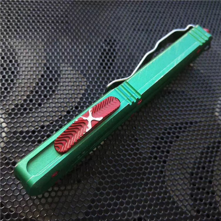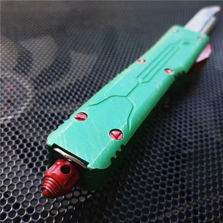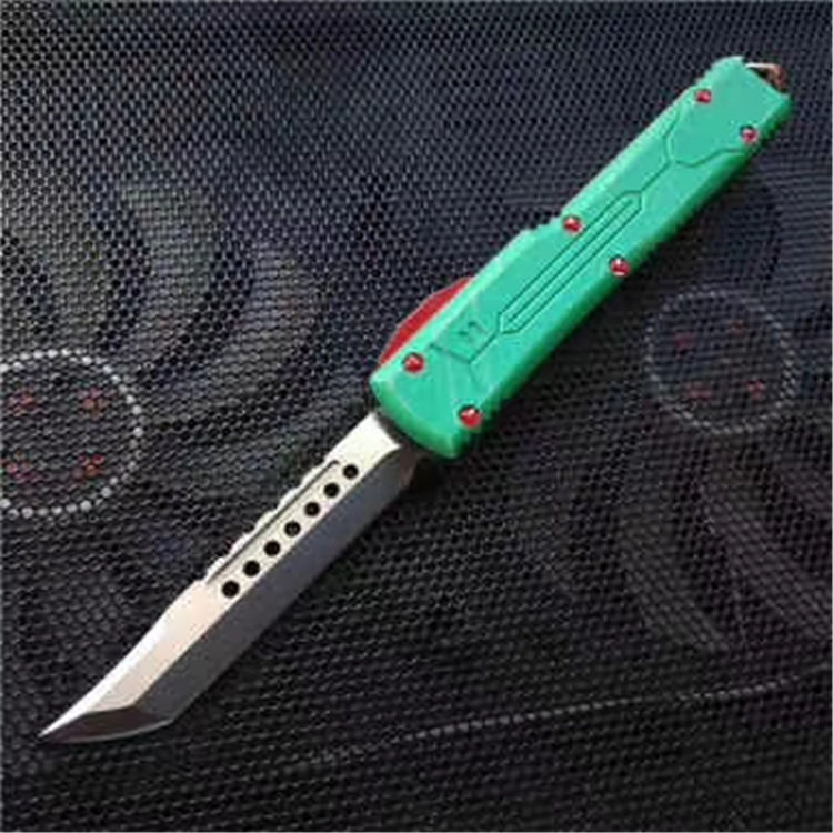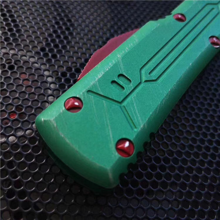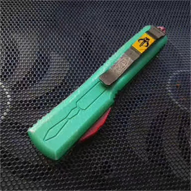 微技术赏金猎人跳刀 全长:21.8cm 刃长:8.8cm 刃厚:3mm 刃宽:1.5cm 柄长:12.5cm 刃材:D2 硬度:59-60 (超高硬度,非常锋利) 净重:95g 毛 重: 128g(含包装) 表面:拉丝 柄材:T6061航空铝 刀套:nylon 备注:带玻璃锥,腰夹,专用维护工具