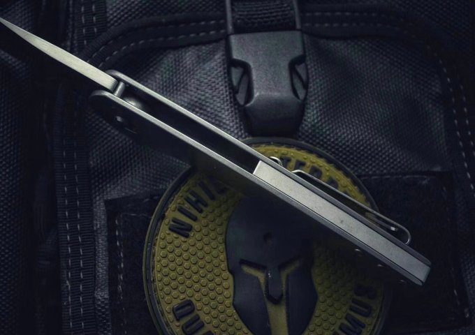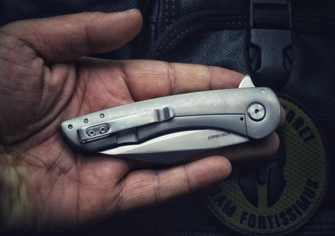 舍离折刀 全长:197mm 刃长:8mm 闭合:117mm 刃宽:2.5mm 刃厚:4mm 刃材:9Cr18MoV(刀刃数控磨工处理) 刀重:133G 硬度:58-59HRC 表面:刀刃真空处理,拉丝 柄材:全钢 刀夹:全钢 锁型:线锁 结构:一体锁结构、滚珠轴承、快开畅顺 其他:配专业防水盒