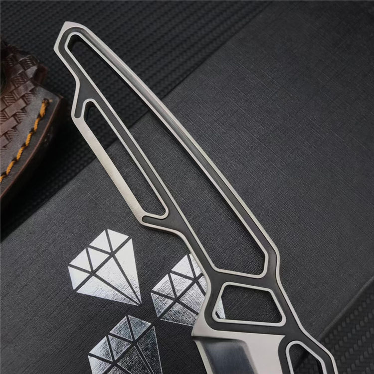 灵狐者全钢直刀 全长:22CM 刃长:11.5CM 刃宽:3.7CM 刃厚:0.5CM 净量:约400克 总重量:300克 刃材:8CR13MOV 硬度:58-59HRC(真空热处理) 表面:超镜光刃 柄材:全钢 剑鞘:压花真皮套 包装黑色礼盒,刀刃和刀柄,采用高精密CNC数控磨