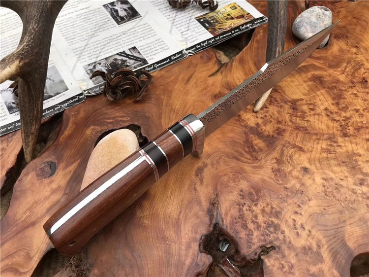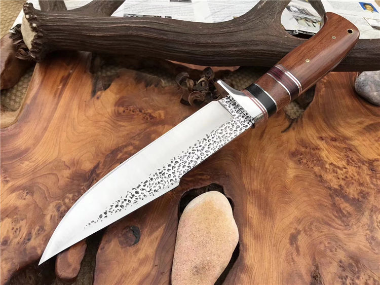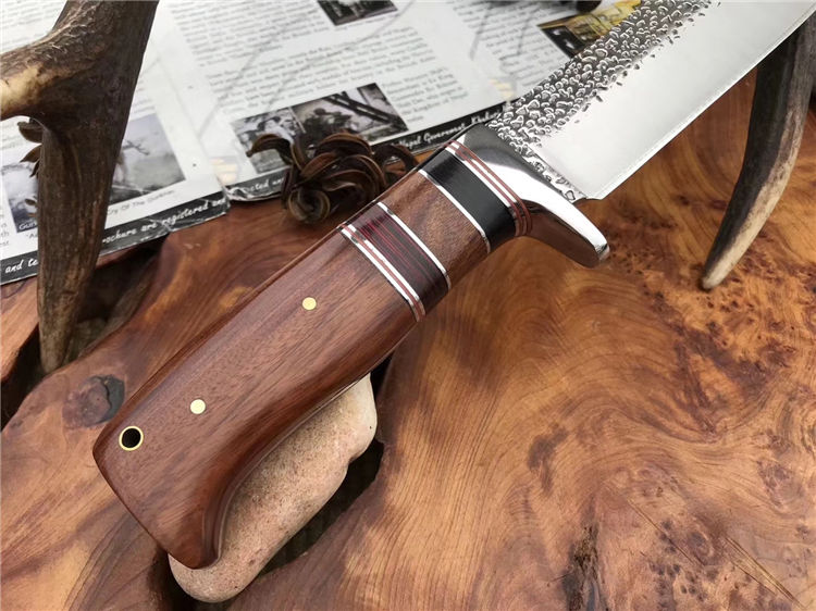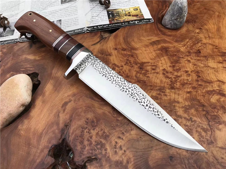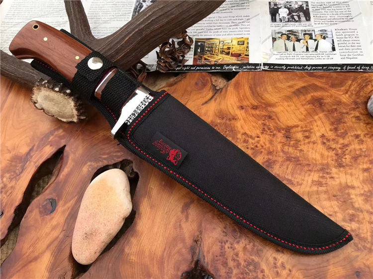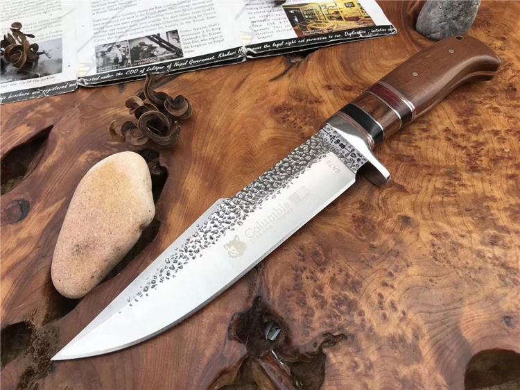 哥伦比亚SA73战术直刀 类型:直刀 全长:30.5cm 刃长:18cm 刃宽:3.9cm(最宽处) 刃厚:3.8mm 柄长:12.5cm 表面: 雨滴凹纹 刃材: 5CR13 硬度: 57HRC 柄材: 木柄 重量:355克(含包装) 包装:尼龙套