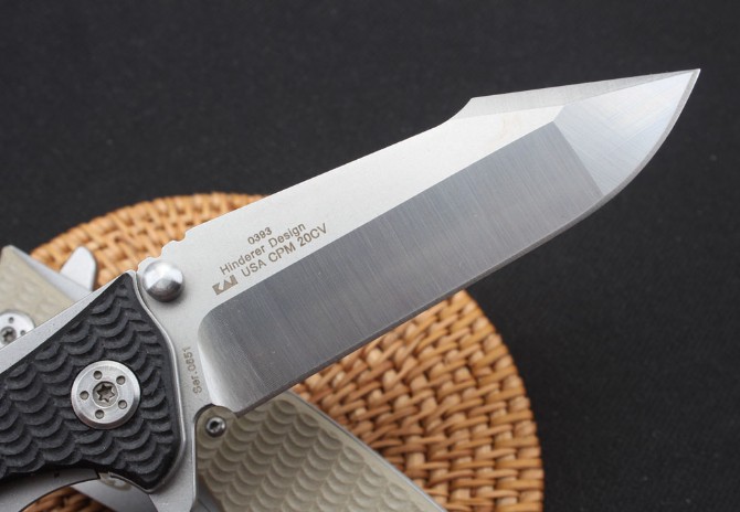 相当前卫概念化的设计,简化了之后逊色了不少,刀柄材料是G10,刀刃材是9Cr18MoV钢,硬度约58HRC,钢内衬片,滚珠轴承的主轴