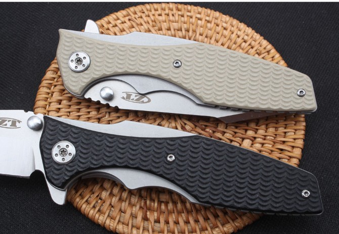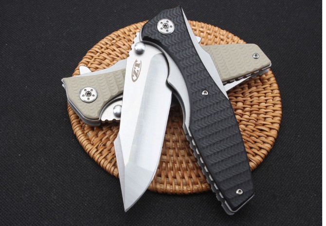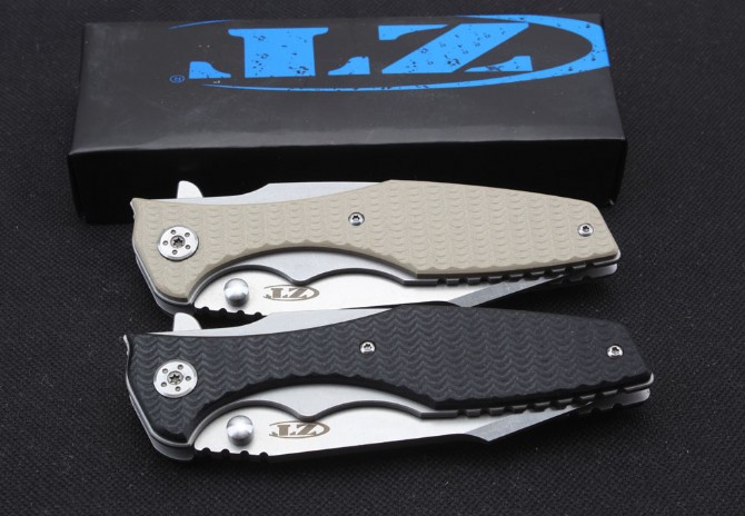 零误差ZT0393轴承折刀 全长:24.5cm 闭合:14.3cm 刃长:10.4cm 刃厚:4mm 净重:209克 相当前卫概念化的设计,简化了之后逊色了不少,刀柄材料是G10,刀刃材是9Cr18MoV钢,硬度约58HRC,钢内衬片,滚珠轴承的主轴