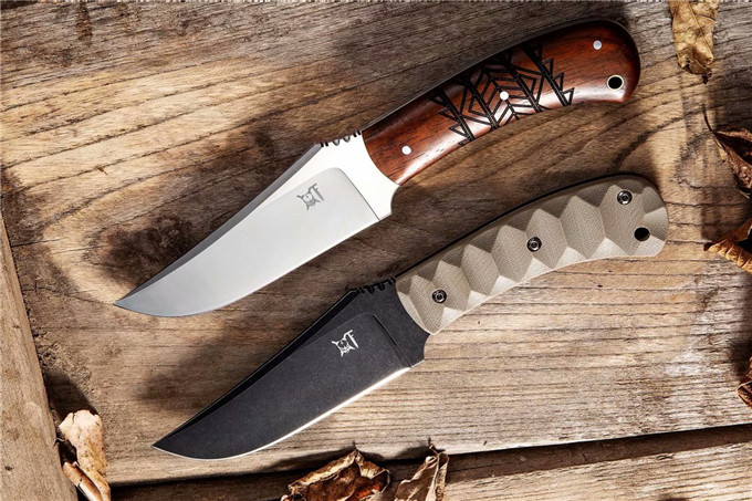 华匠坊温克勒DC53钢直刀 全长:230MM 刃长:120MM 柄长:110MM 厚度:4.5MM 硬度:60-61 真空油率本刀有两条表面处理一种是砂光配微粒黄檀柄,刻印第安纹(配皮套)另一种是沧桑石洗龟甲纹(配沙漠色K鞘)木柄是微粒黄檀柄,这儿就不祥细介绍了,有兴趣的可以百度.本刀细节该倒角的有倒角,开背齿的比较有难度,尽可能和原品一致木柄刻印第安纹包浆后比较好看,也有防滑作用,木柄