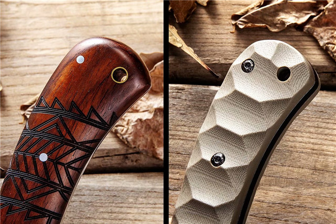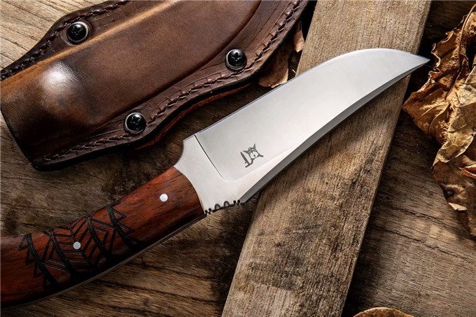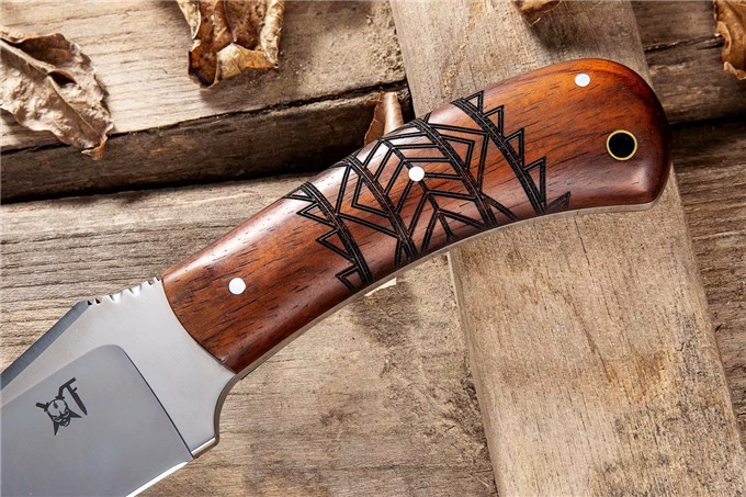 真空油率本刀有两条表面处理一种是砂光配微粒黄檀柄,刻印第安纹(配皮套)另一种是沧桑石洗龟甲纹(配沙漠色K鞘)木柄是微粒黄檀柄,这儿就不祥细介绍了,有兴趣的可以百度.本刀细节该倒角的有倒角,开背齿的比较有难度,尽可能和原品一致木柄刻印第安纹包浆后比较好看,也有防滑作用,木柄