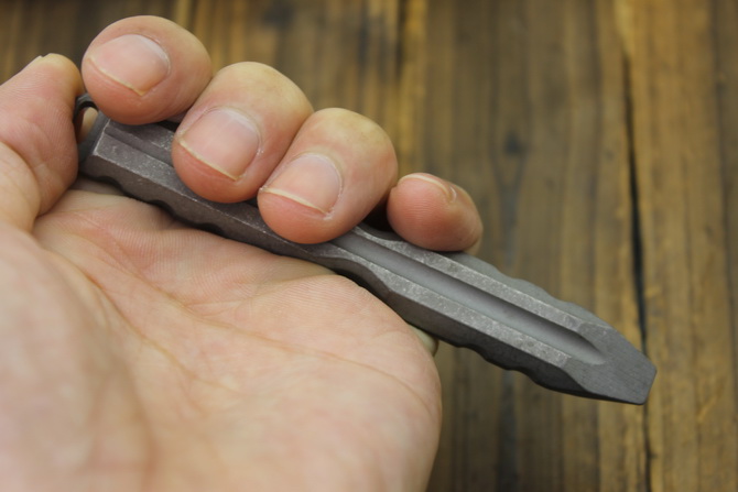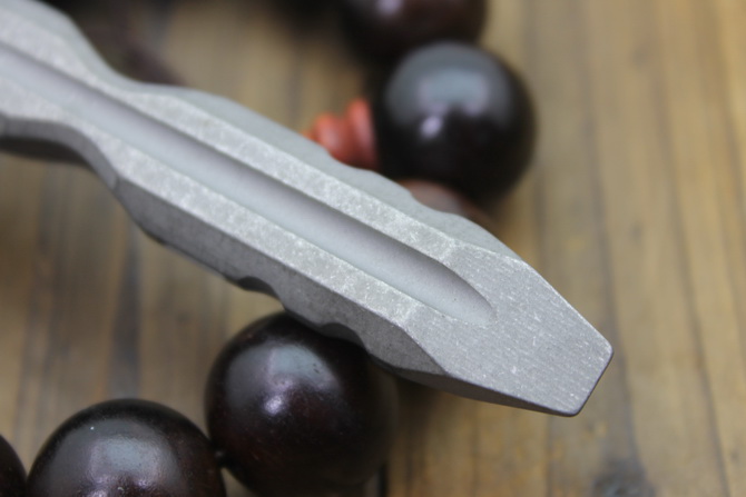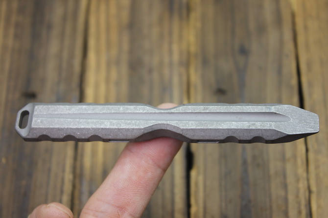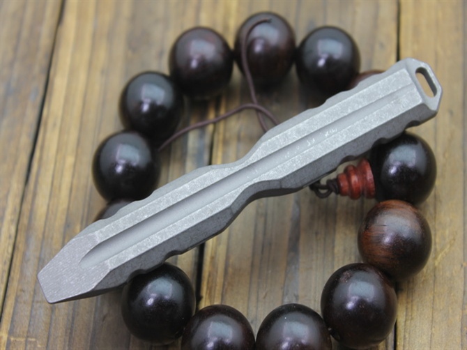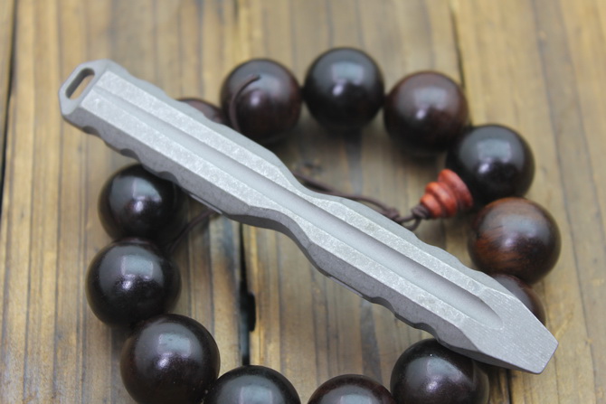 行天1号随身刺棍 全长:108mm 宽度:15mm 厚度:9mm 材质:TC4钛合金 重量:48g 功能:可用作手刺,撬棍