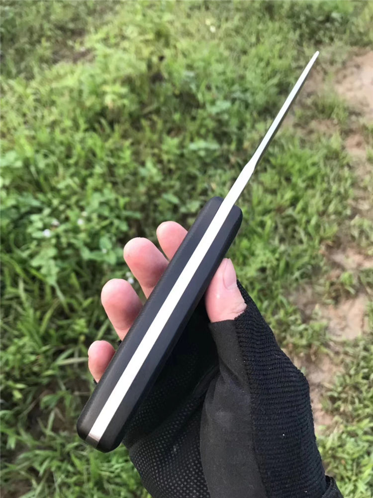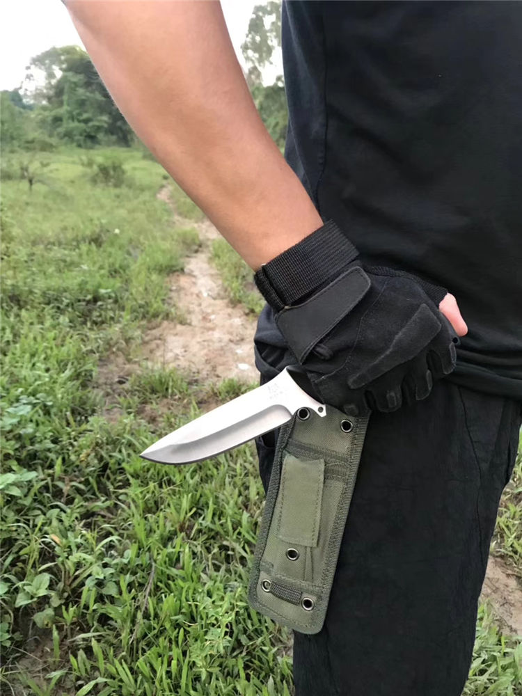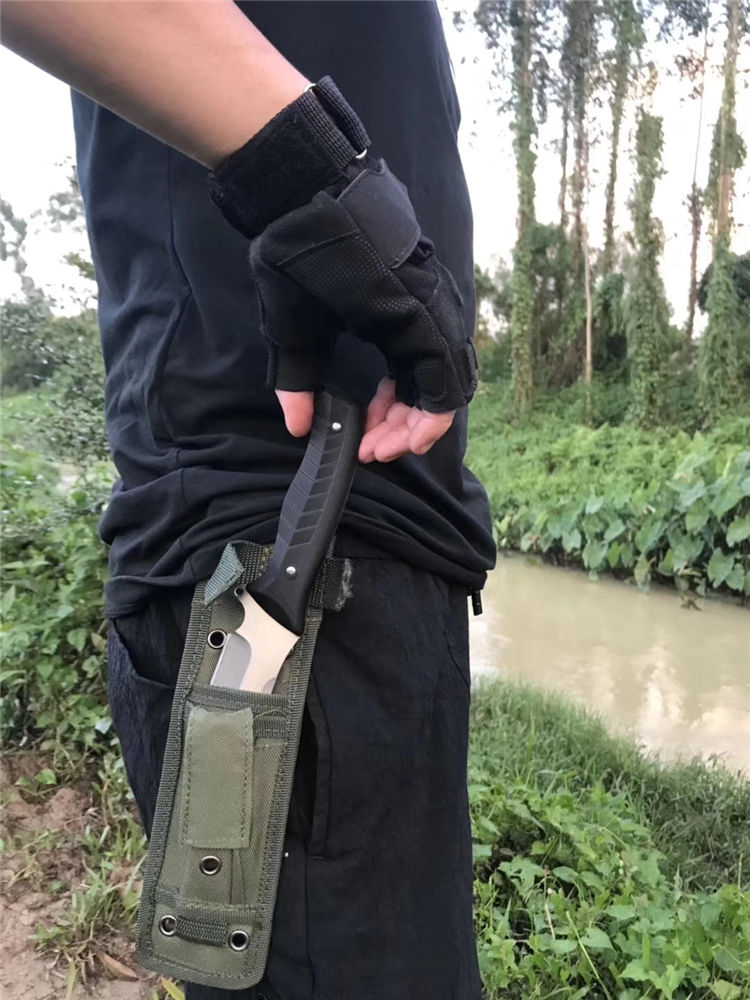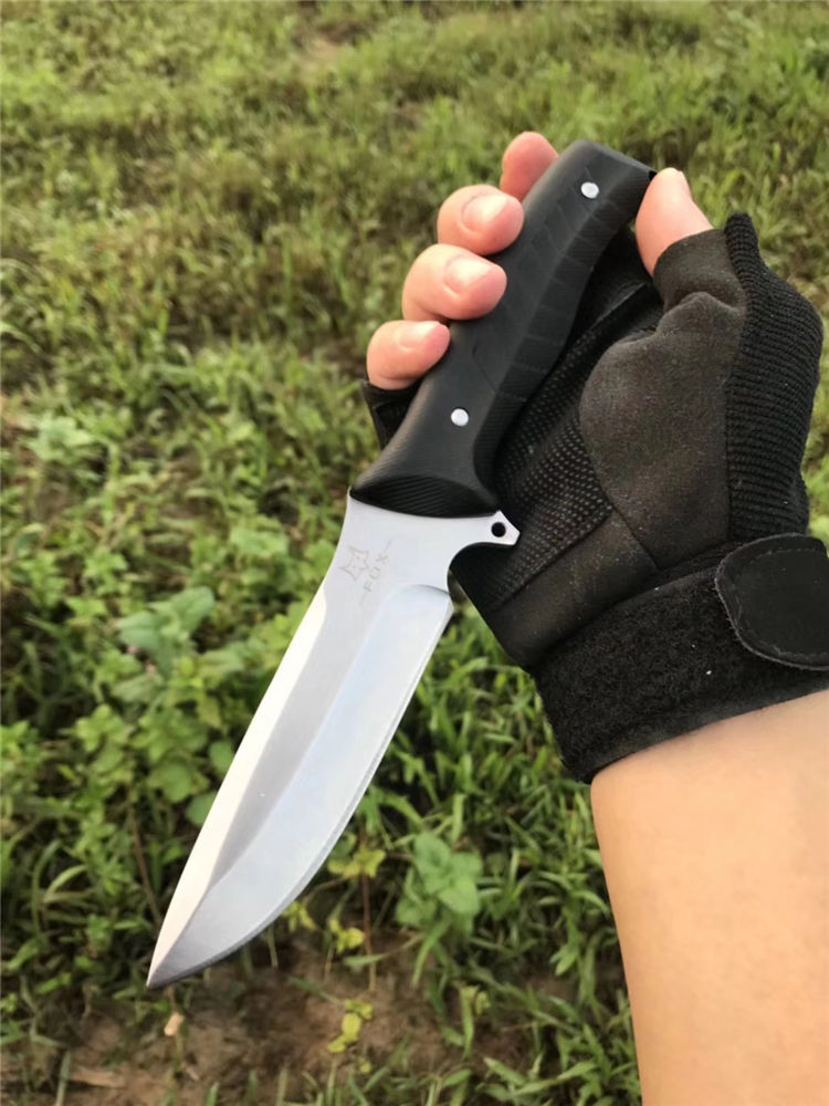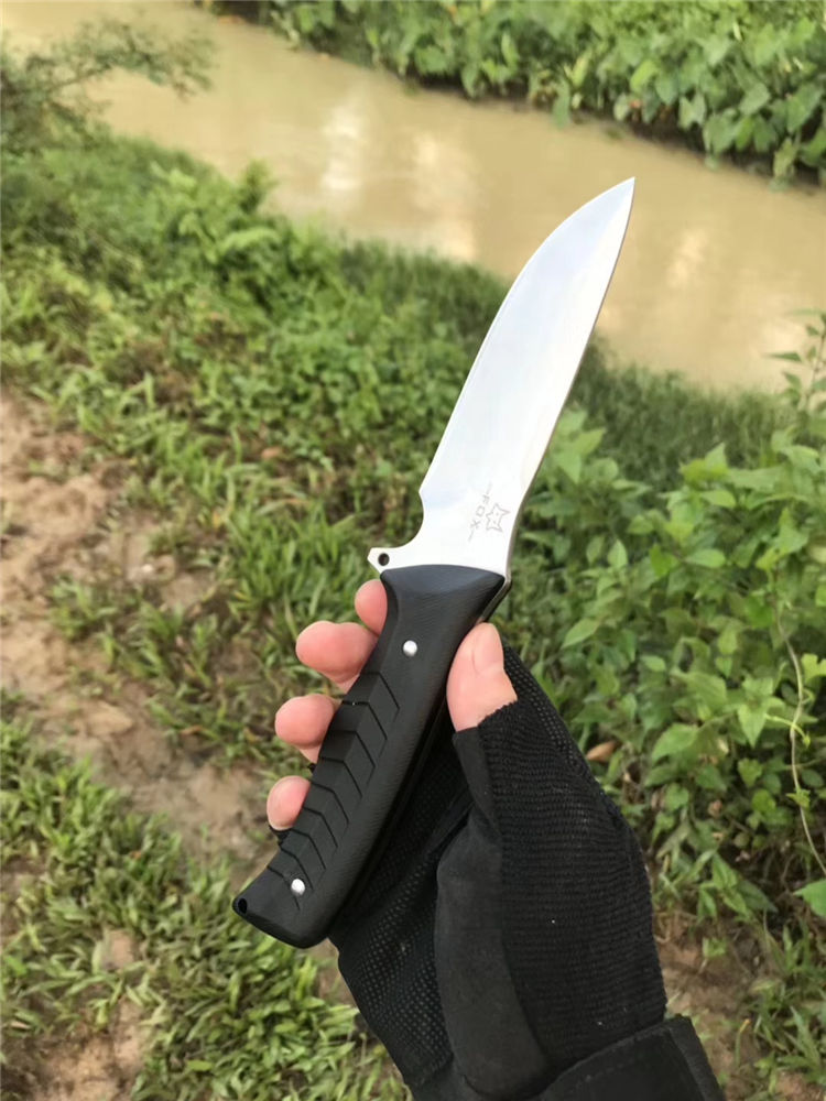 FOX狐狸伏击者直刀 全长:24.5cm 柄长:12.5cm 刃长:11.5cm 刃厚:0.5cm 柄材:FRC 刃材:7cr17mov 刀套:军绿尼龙套