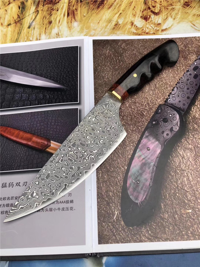 花梨瘿木黑酸枝木组合手柄,VG10大马士革钢、极度锋利,真空热处理浸油