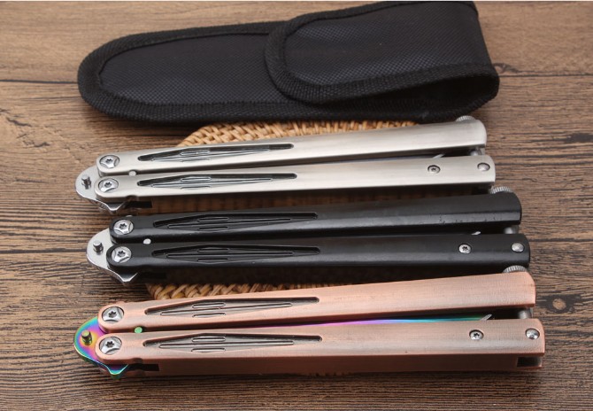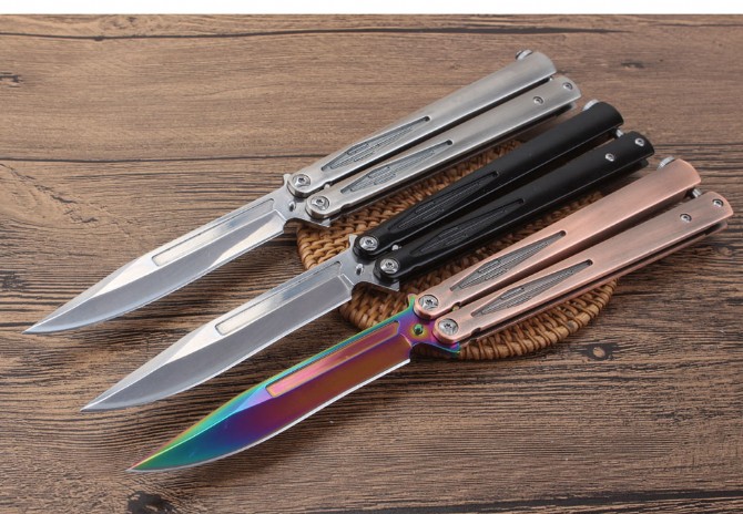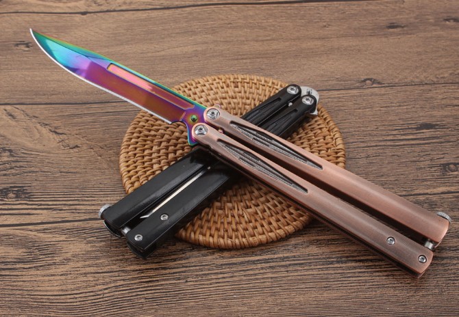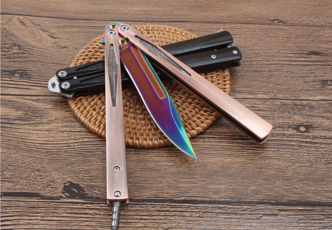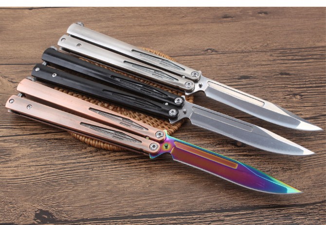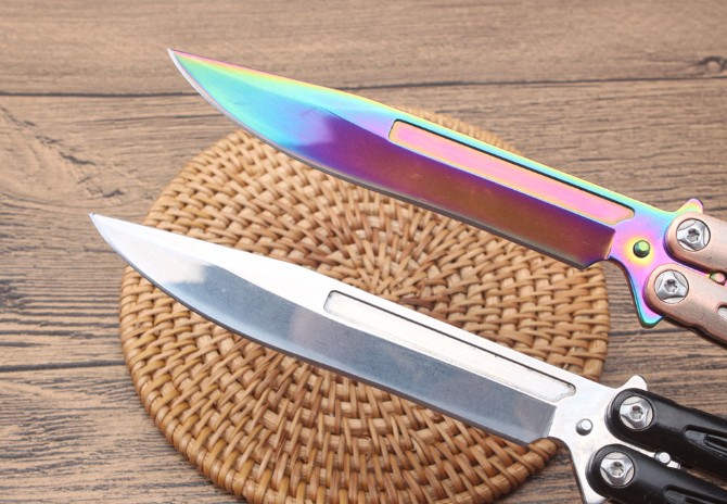 轴承光速粒子甩刀 品牌:微技术 全长:25.6cm 刃长:10.8cm 柄长:13.9cm 刃宽:1.9cm(最宽处) 刃厚:2.9mm 刃材:5CR15MOV 硬度:57HRC 刀柄:全钢柄 表面:镜光.彩钛 重量:197克(含包装) 配原厂包装+彩盒+尼龙套.