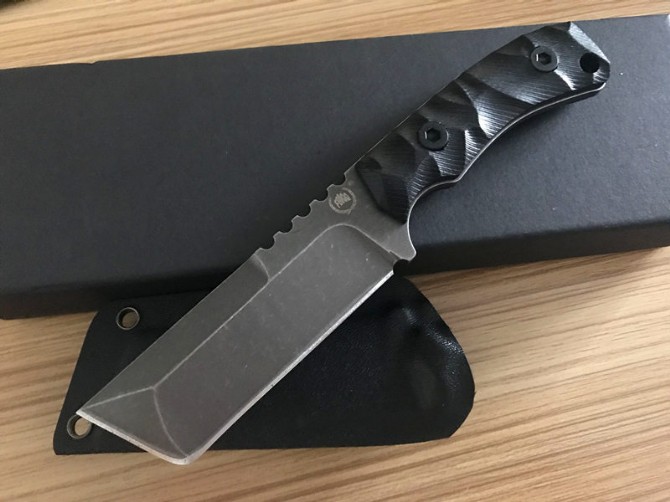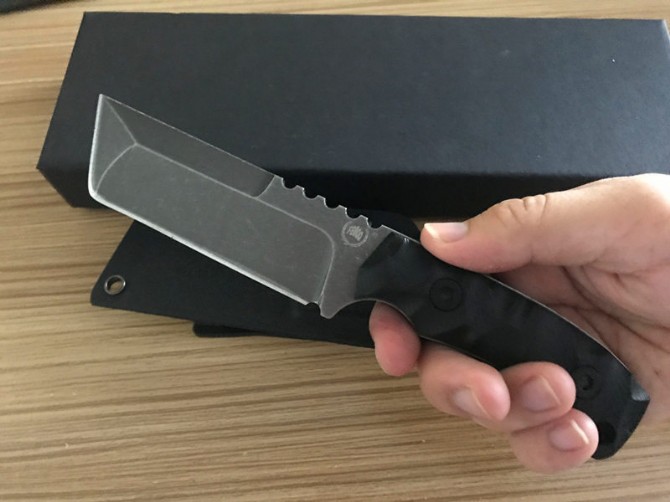 FBI悍马直刀 类型:直刀 全长:20cm 刃长:9.5cm 柄长:9.5cm 刃厚:0.43cm 刃宽:3cm 刃材:5CR15MOV 柄材:防滑G10柄。 硬度:57HRC 重量:300克(含包装) 表面处:灰钛 其他:高档硬纸盒和K鞘