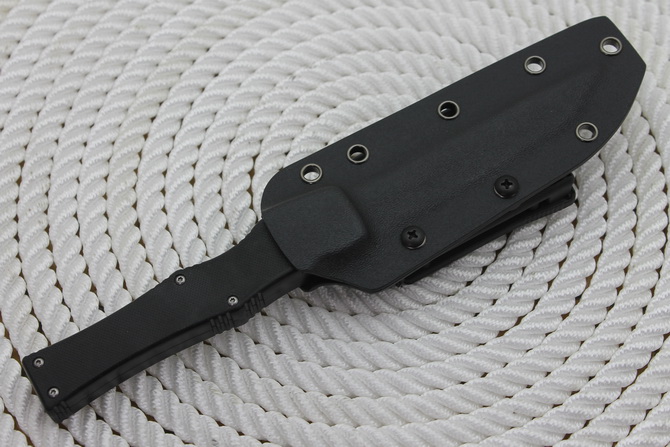 151-4战术直刀 材质:D2 全长:23.4cm 刃长:10.1cm 刃厚:0.4cm 刃宽:2.1mm 表面:沙光 硬度:60±1HRC(真空热处理) 手柄:黑色G10,CNC成型 刀鞘:战术K鞘(进口Kydex板)配礼品硬盒 其他:每一把有独特的流水号