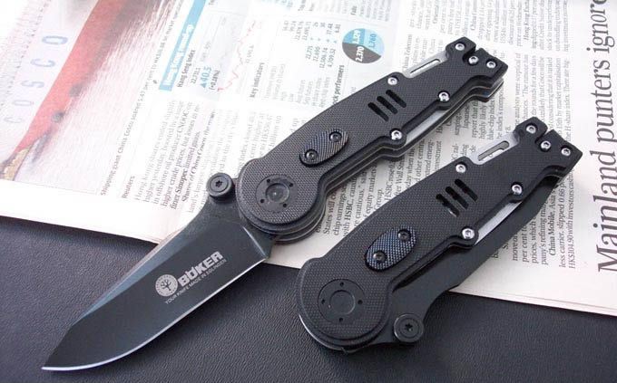 博克AT-9 刃材:440 硬度: 56 类型: 折刀 全长:20.2CM 刃长:8.5CM 刃厚: 0.32CM 刃宽:3.6CM (最宽处) 柄长: 11.7CM 柄厚: 1.5CM 涂层:发黑 柄材: G10片+钢垫 重量:180克 锁定翰嗨?开锁按钮设在刀把侧面 带腰夹