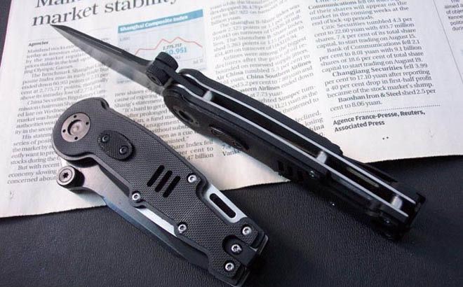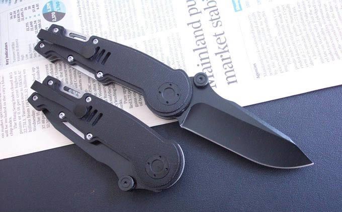 刃材:440 硬度: 56 类型: 折刀 全长:20.2CM 刃长:8.5CM 刃厚: 0.32CM 刃宽:3.6CM (最宽处) 柄长: 11.7CM 柄厚: 1.5CM 涂层:发黑 柄材: G10片+钢垫 重量:180克 锁定翰嗨?开锁按钮设在刀把侧面 带腰夹