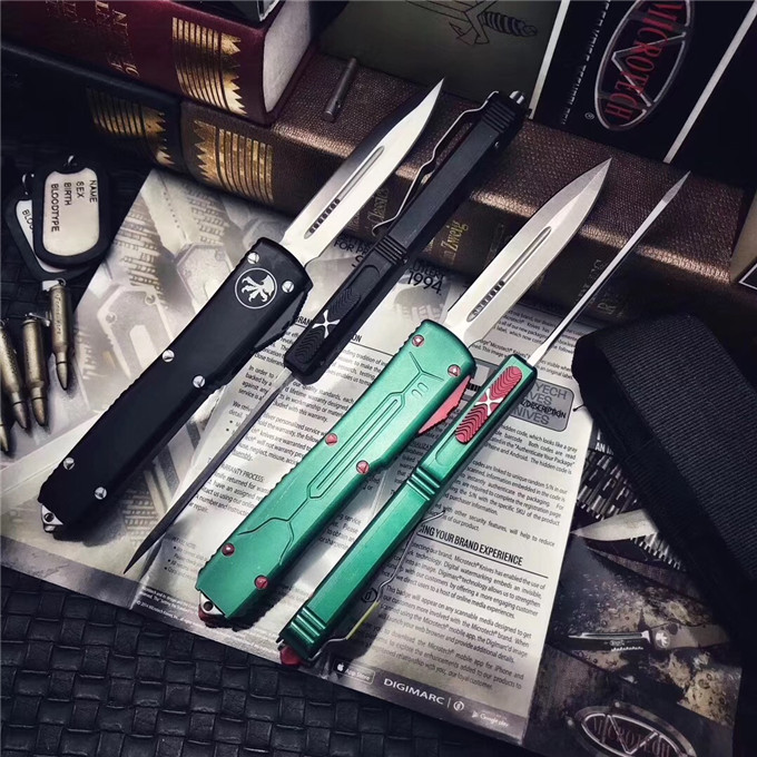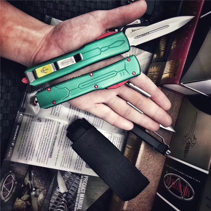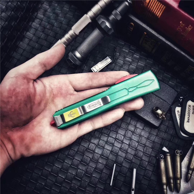 UT85赏金猎人跳刀 全长:20CM 刃长:8CM 刃厚:4MM 刃材:D2高速钢 手材:T6061航空铝 硬度:59HRC 净重:97克含 包装:130克 配件:彩盒+说明书+原装螺丝起子2支+尼龙套 黑色柄:表面砂光拉丝处理 绿色柄:表面镜光石洗+砂光拉丝处理 两种绿色赏金猎人和正品一样都是表面带有出厂时刮纹〖更多同款不同刃样联系私发图片〗