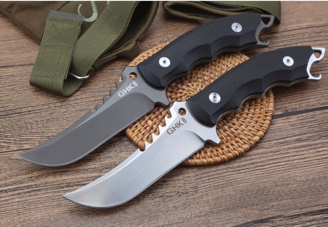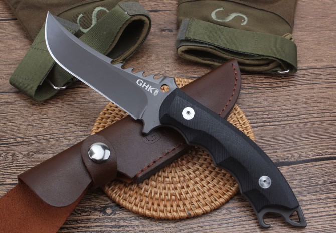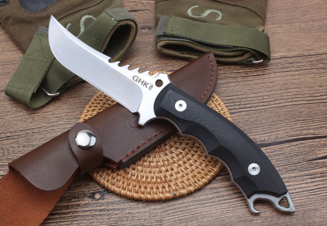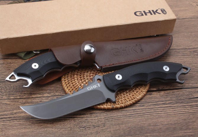 GHK猎豹5B直刀 品牌:GHK 类型:战术直刀 材质:9Cr18M0V 全长:253cm 刃长:11.9cm 刃厚:0.45cm 刃宽:3.1mm 重量:415克含包装 表面:石洗-沙光 硬度:60±1HRC(真空热处理) 手柄:黑色G10,CNC成型 刀鞘:牛皮套(进口Kydex板)配礼品硬盒