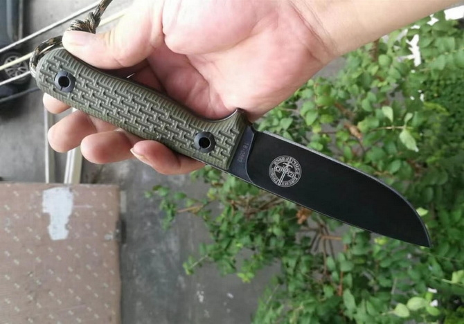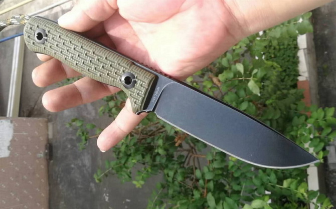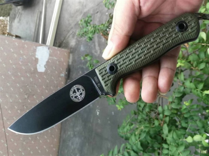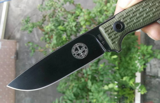 德国波尔部队1号生存战术直刀 全长:247mm 刃长:117mm 刃材:Niolox 硬度:61+-HRC 表面:沧桑石洗 刃厚:6mm 柄材:G10(电脑锣精雕成型) 重量:280g 套:Kydex进口K鞘 此刀手工非常完美,整把刀线切割CNC电脑锣加工成型,真空热处理,采用进口Niolox钢材,更好的保护了刀刃保持性(每一把有独立编号)