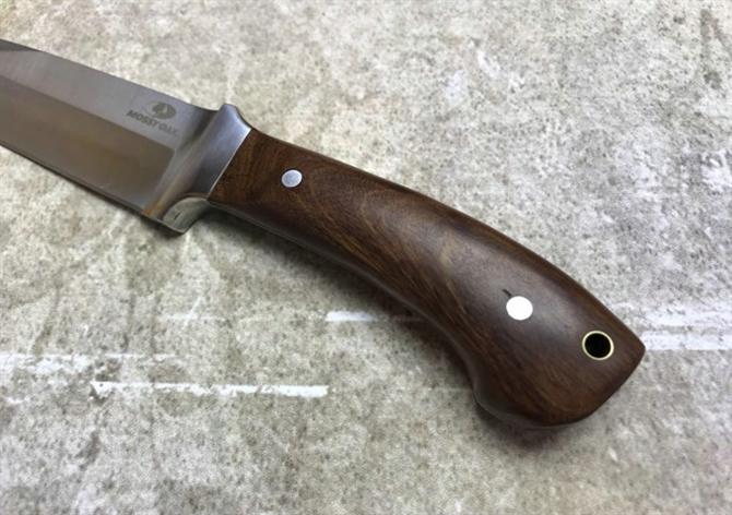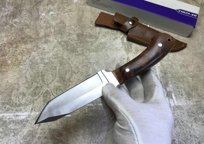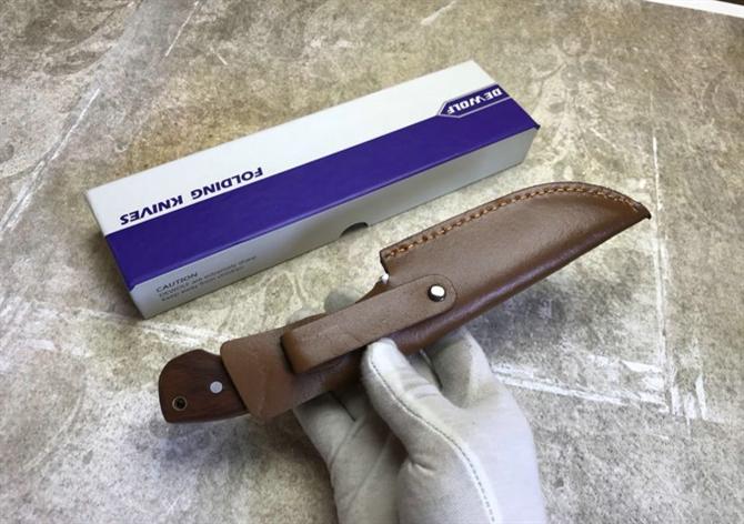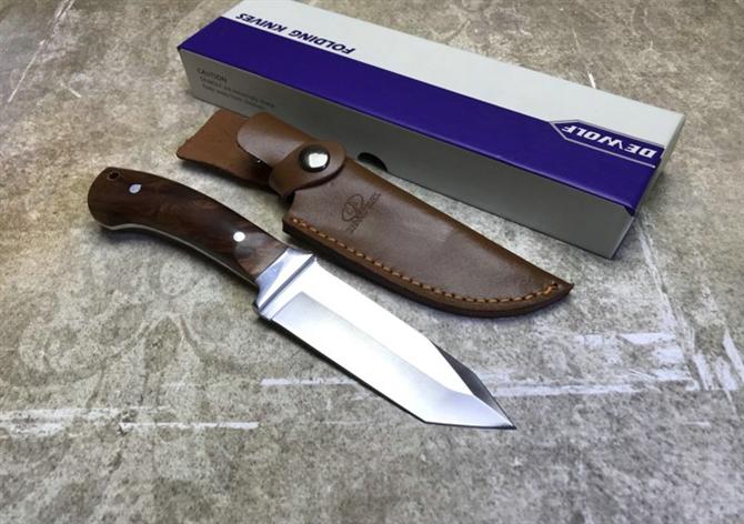 哥伦比亚A3195直刀 全长:230mm 刃长:115mm 刃宽:30mm 刃厚:30mm 刃材:5铬 硬度:58 表面:沙光 柄材:红木 刀鞘:皮套