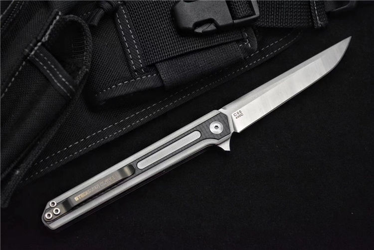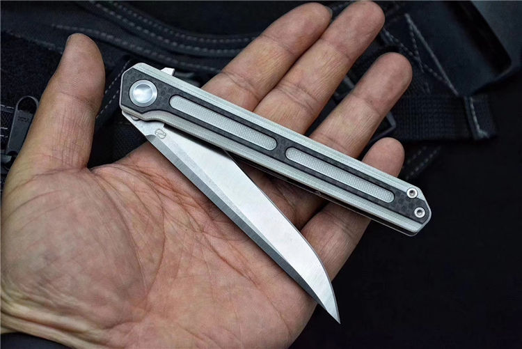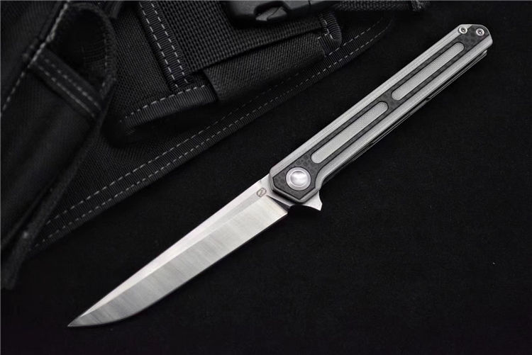 时代C06折刀 全长:218MM 刃长:95MM 柄长:121MM 刃厚:4MM 重量:99g 钢材:440C 刃面:石洗 柄材:钢衬+贴碳纤维G10 包装:防水盒 轴承:陶瓷珠KVT