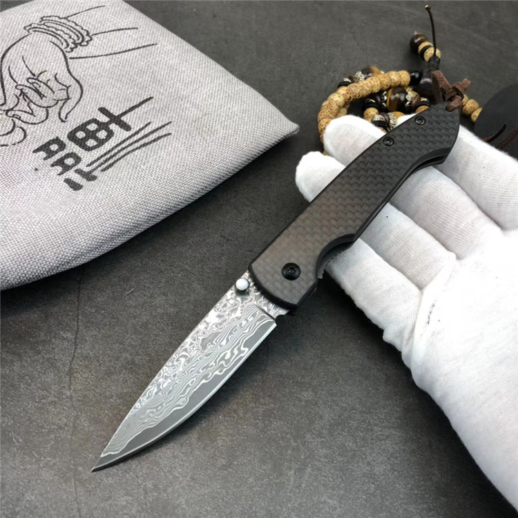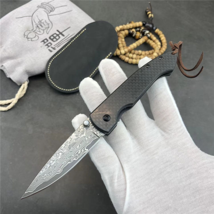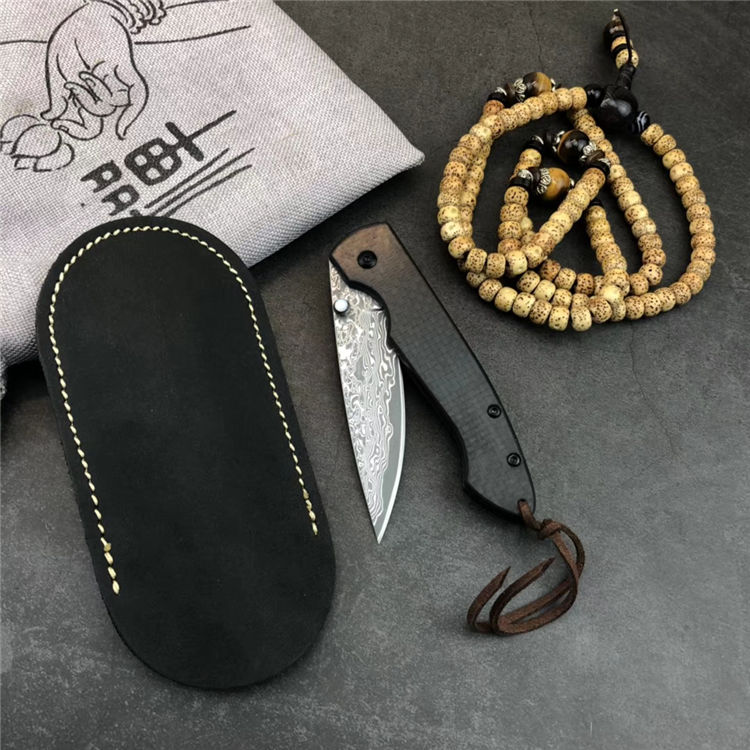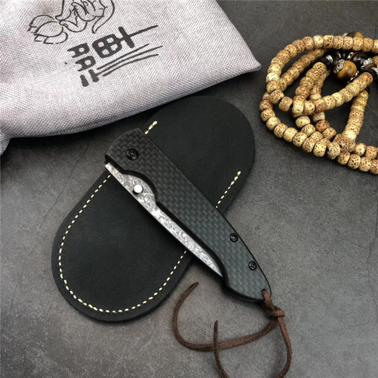 大马士革碳纤版小檀鱼折刀