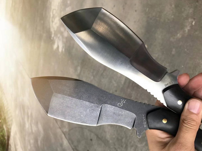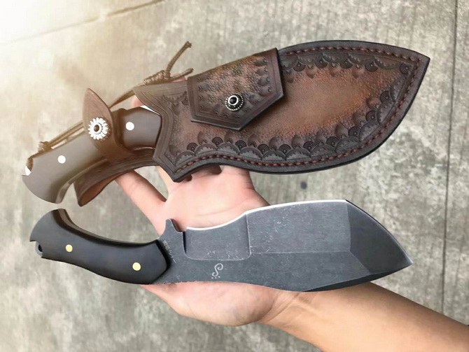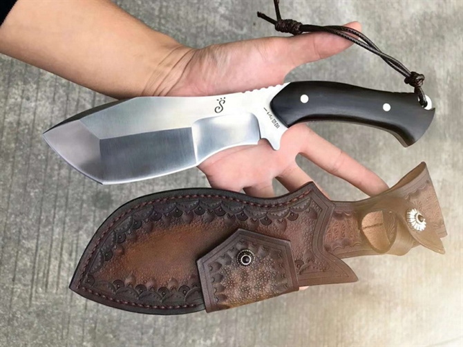 田边一筹突破者直刀 总长:28cm 刃长:14.8cm 刃厚:6MM 刃宽:6cm 重量:裸刀约422G 钢材:台湾公司提供DC53模具钢 热处理:真空热处理 硬度:60-62HRC,回火1-2HRC,保持韧性 柄材:进口黑檀木 皮套:意大利进口优质纯手工雕花缝线植鞣皮,质量很好 包装:黑色硬盒子包装 以强悍霸气的气魄突破一切的困境!没有不肯能事情,突破,根本无法阻挡你的前进,一款专为户外求生强悍型中直刀突破而设计,刀友们不要错过这么好的一把刀,你们的强悍肌肉男神来了,重量级