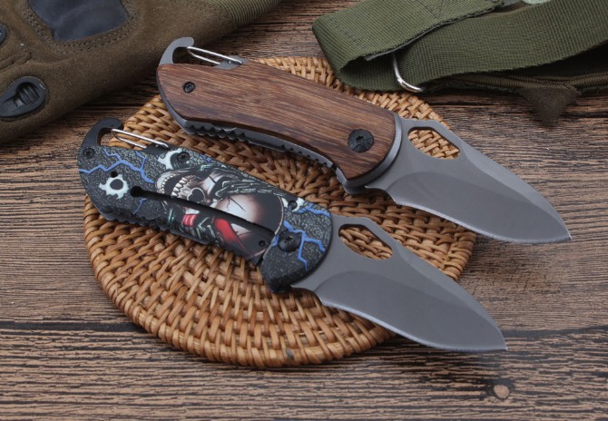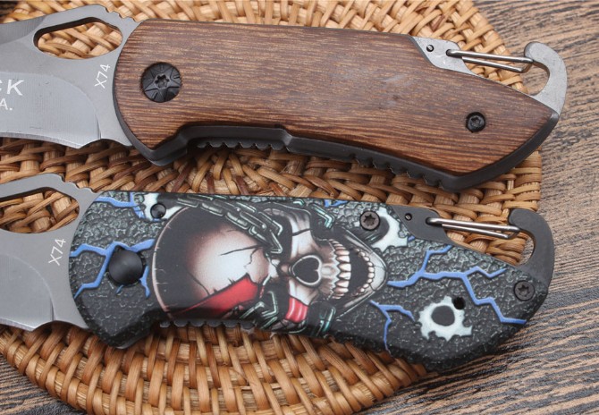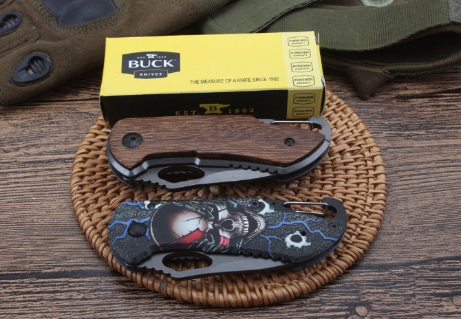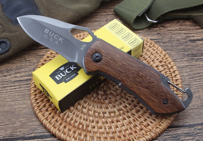 BUCK巴克精品X74折刀 品牌:BUCK 全长:15.0cm 刃长;6.0cm 柄长:9.0cm 刃宽:3.0cm 刃厚:2.9mm 刃材:440C 重量:木柄110g,三D100克(含包装物) 硬度:57HRC 表面:全灰钛处理 柄材:木柄和三D打印图案 锁型:线锁 其他:配彩盒,配刀背夹