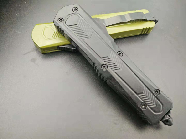 微技术火箭直出跳刀 全长:22.5CM 刃长:9CM 柄长:13.5CM 刃厚:0.3CM 硬度:56HRC 刃材:440 净重:295克(整刀) 毛重:320克(含包装物) 开合:双动作,直推开关,自动弹出和收回 包装:耐磨专用战术尼龙套 玻璃敲击器:不锈钢玻璃敲击器
