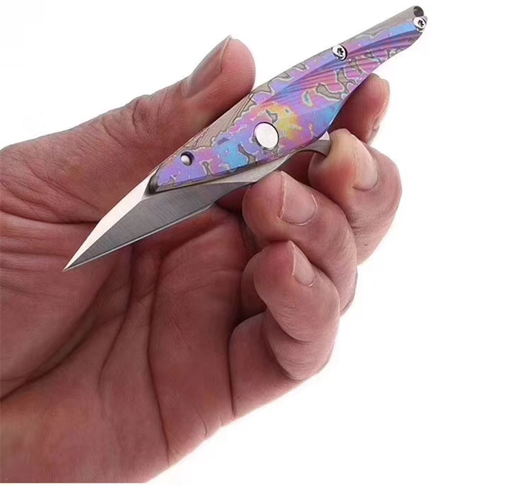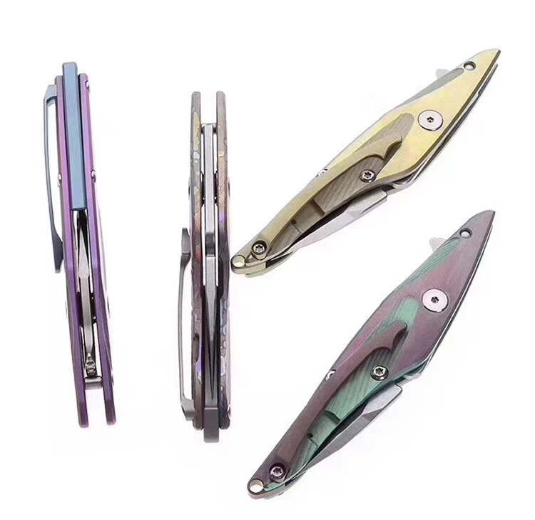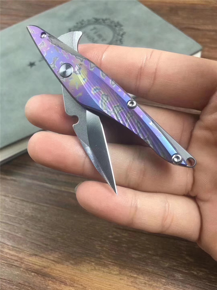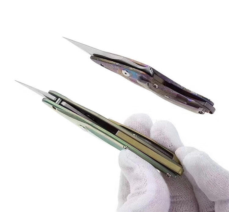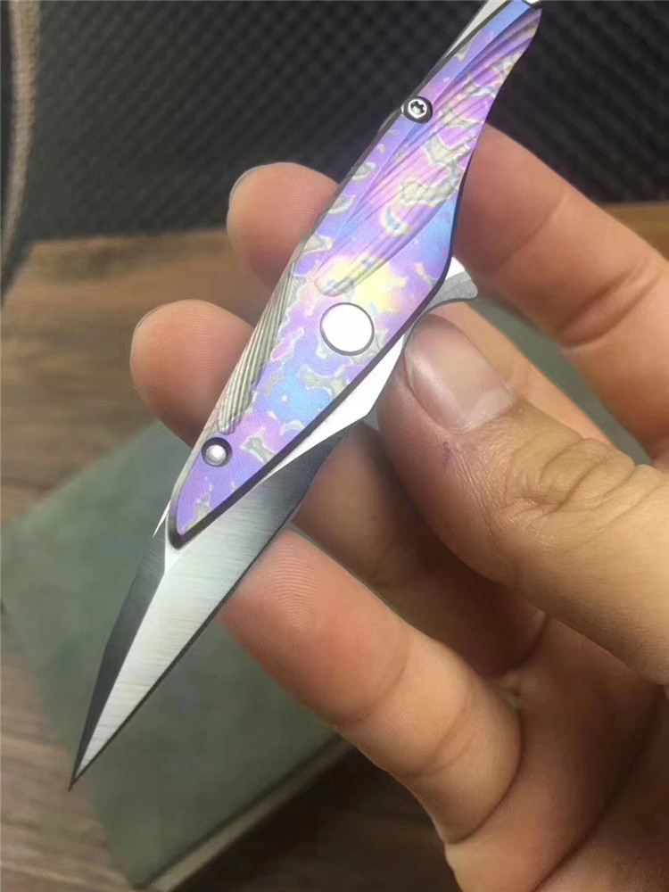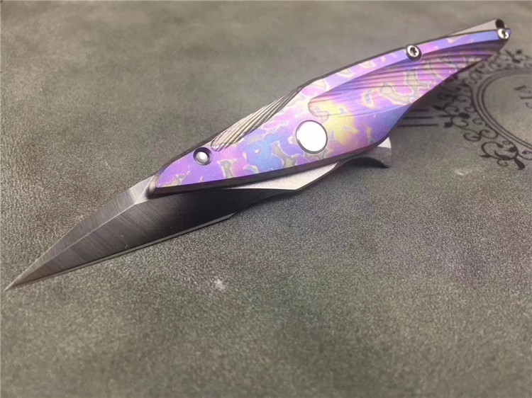 S35VN钛合金蜂鸟折刀 全长:11.5cm 刃长:7cm 折合:9cm 刃宽:1cm 刃厚:2.5mm 刃材:S35VN 重量:30 硬度:60-61HRC 柄材:CT4钛柄 柄厚:9mm