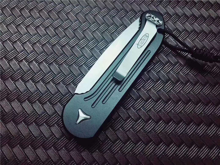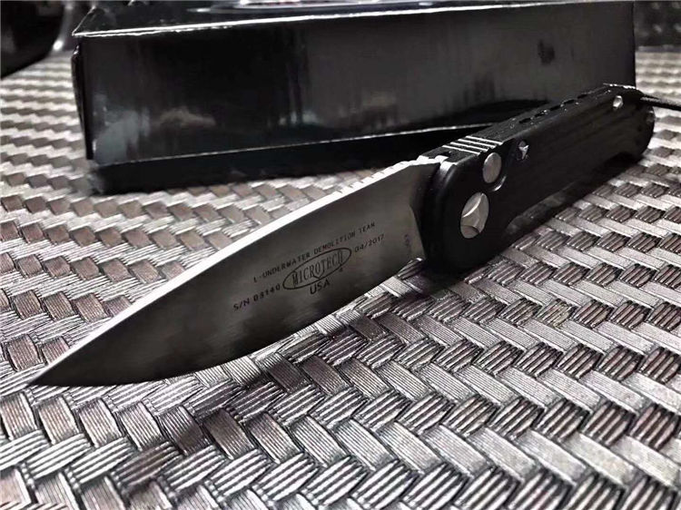 经典款微技术135-1水滴头侧跳刀 品牌:微技术 全长:20.2cm 刃长:8.0cm 柄长:11.5cm 刃宽:2.7cm 刃厚:3.2mm 刃材:D2 重量:160g(含包装物) 硬度:59HRC 表面:真空镀钛处理 柄材:钢片+G10手柄精镶碳纤.内置轴承 锁型:线锁