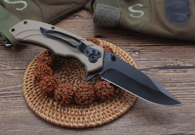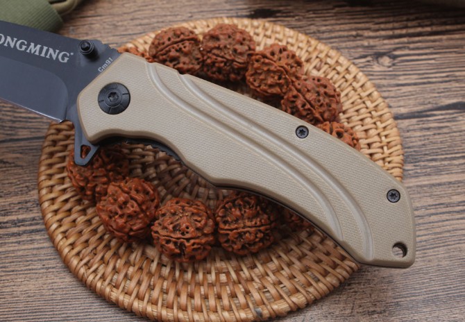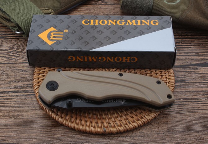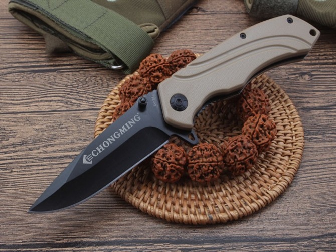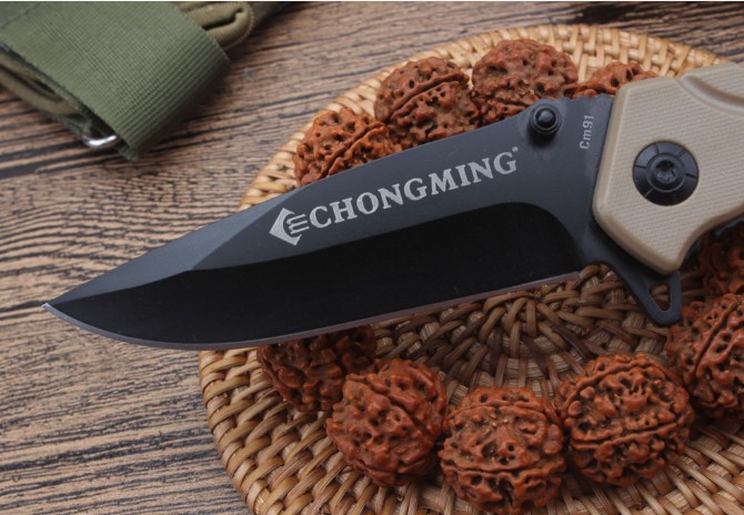 创名CM91快开折刀 全长:20.0cm 刃长:8.8cm 柄长:11.2cm 刃宽:2.8cm 刃厚:2.5mm 刃材:440 重量:128(含包装) 硬度:57HRC 表面:黑钛 柄材:钢片+防滑塑胶柄 锁型:线锁 其他:配厂彩盒